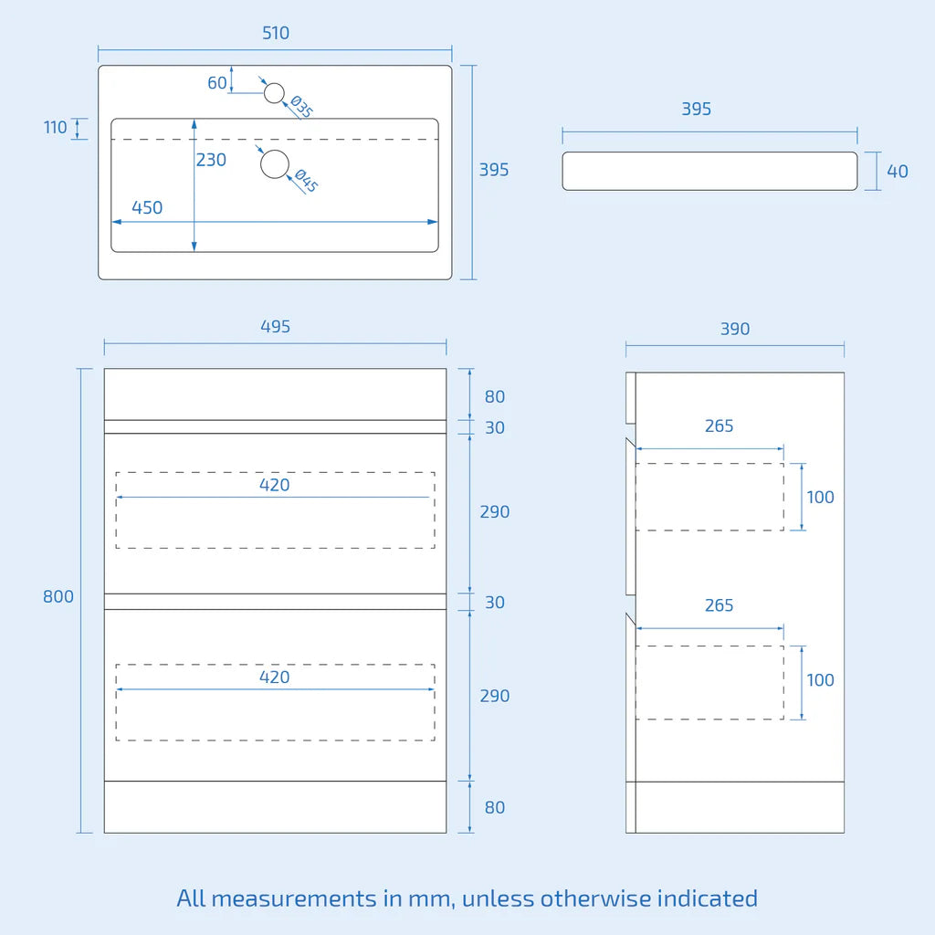 This Freestanding PVC 500mm 2 Drawers Vanity & WC Unit provides generous storage and washing space while efficiently using bathroom space. The vanity unit combines style and practicality with a high-quality ceramic basin and convenient shelving underneath, perfect for daily use. Made from water-resistant materials with a sleek gloss finish, it adds a modern touch to your bathroom. This furniture set is an excellent choice for any modern bathroom.