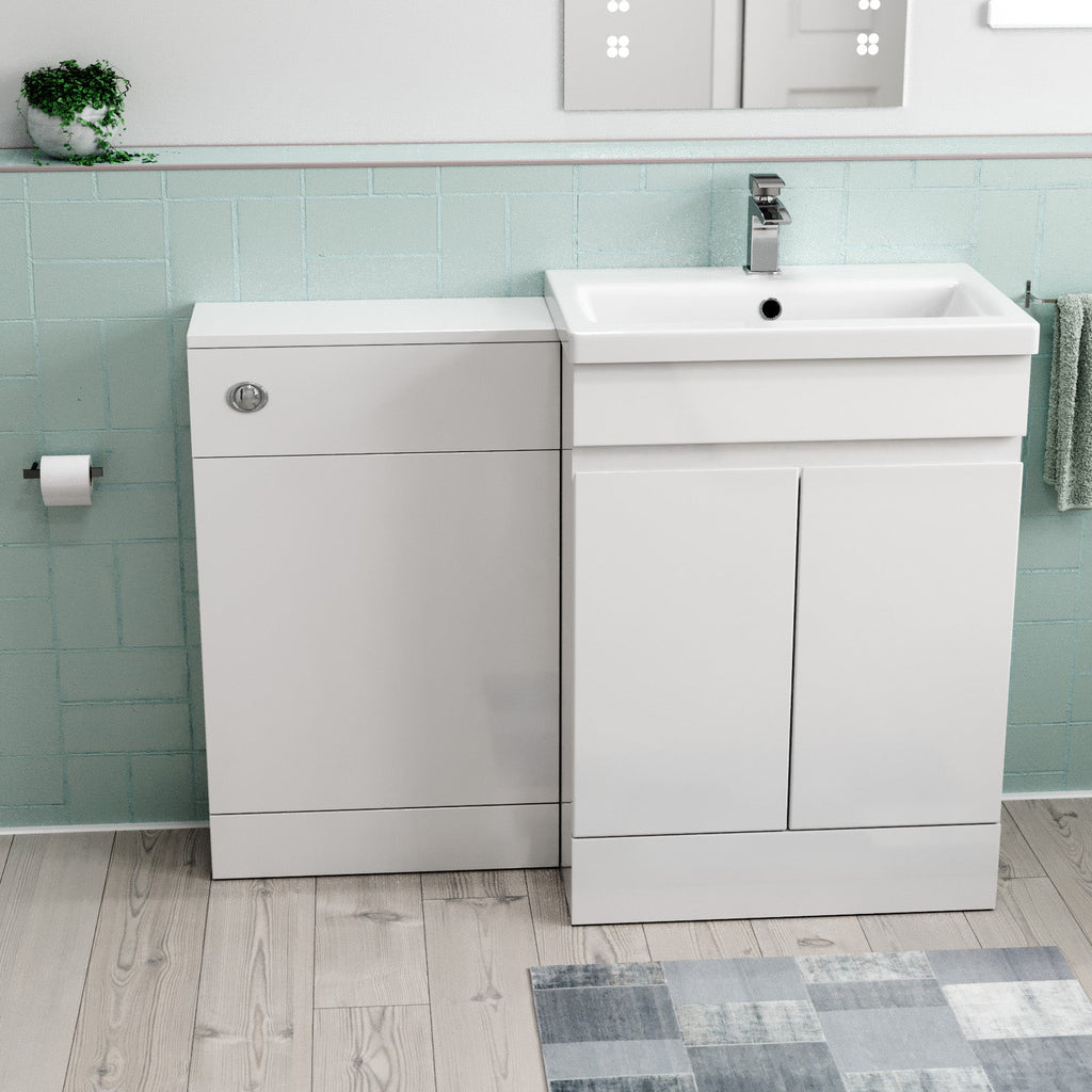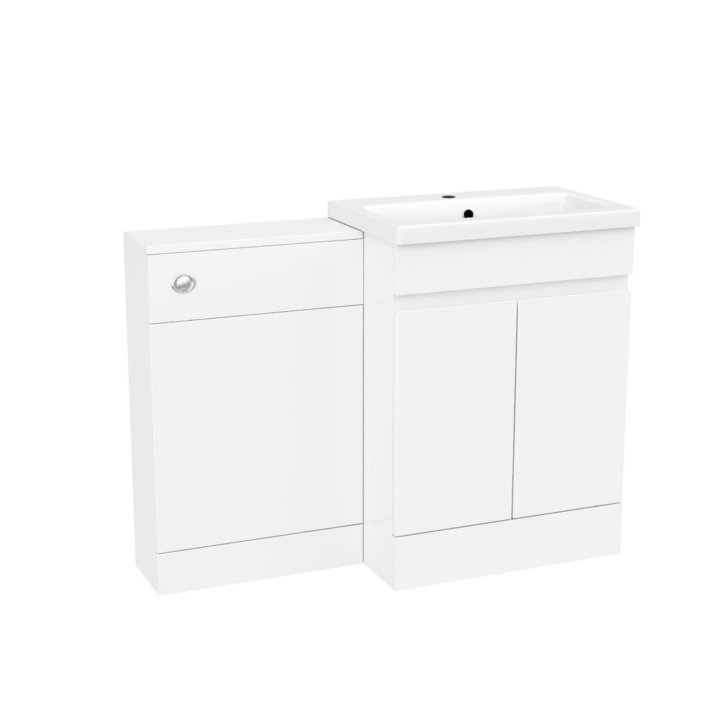 This Freestanding PVC 600mm 2 Doors Vanity & WC Unit provides generous storage and washing space while efficiently using bathroom space. The vanity unit combines style and practicality with a high-quality ceramic basin and convenient shelving underneath, perfect for daily use. Made from water-resistant materials with a sleek gloss finish, it adds a modern touch to your bathroom. This furniture set is an excellent choice for any modern bathroom.