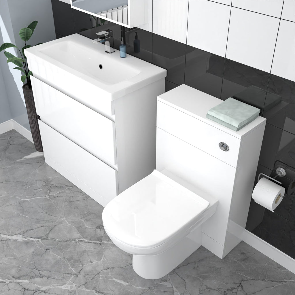 This 800mm basin vanity and toilet set provides generous storage and washing space while efficiently using bathroom space. The vanity unit combines style and practicality with a high-quality ceramic basin and convenient shelving underneath, perfect for daily use. Made from water-resistant materials with a sleek gloss finish, it adds a modern touch to your bathroom. The toilet features a dual flush cistern and soft-close seat, ensuring safety for all ages and preventing finger injuries. This furniture set is an excellent choice for any modern bathroom.