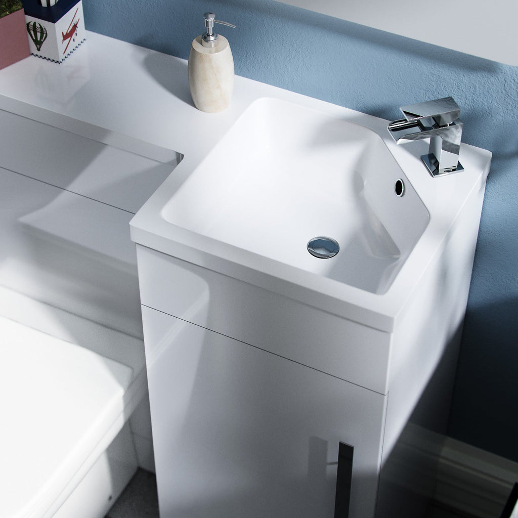 This stylish, freestanding sink and toilet vanity unit combo is a compact 900 mm (90 cm), making this the perfect space saving option for any tight space you may have in the bathroom. The vanity and WC unit is made from 18mm water resistant MDF making this suitable for fitting next to your bath or shower. It features a unique resin basin shape that creates the focal point of your bathroom, while the vanity unit is finished with a striking white high gloss finish. The toilet and sink vanity combo includes a cistern for extra peace of mind. Please Note: The vanity cabinet and WC unit comes flat pack.