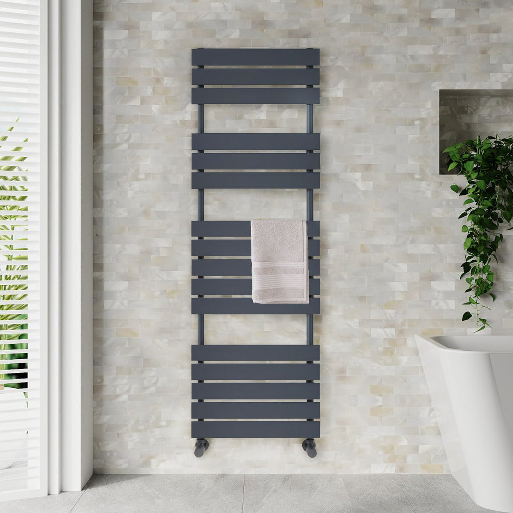 Upgrade your bathroom with the Anthracite 1600 x 450mm Tall Vertical Radiator a sleek, modern flat panel towel radiator designed for style and performance. This space-saving bathroom radiator stands 1600mm tall and 450mm wide, making it ideal for compact or contemporary layouts. Its elegant anthracite finish adds a sophisticated touch, while the heated towel rail function keeps towels warm, dry, and ready for use.
