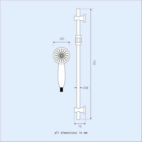 - Chrome plated ABS plastic handset, with rubber easy clean nozzles