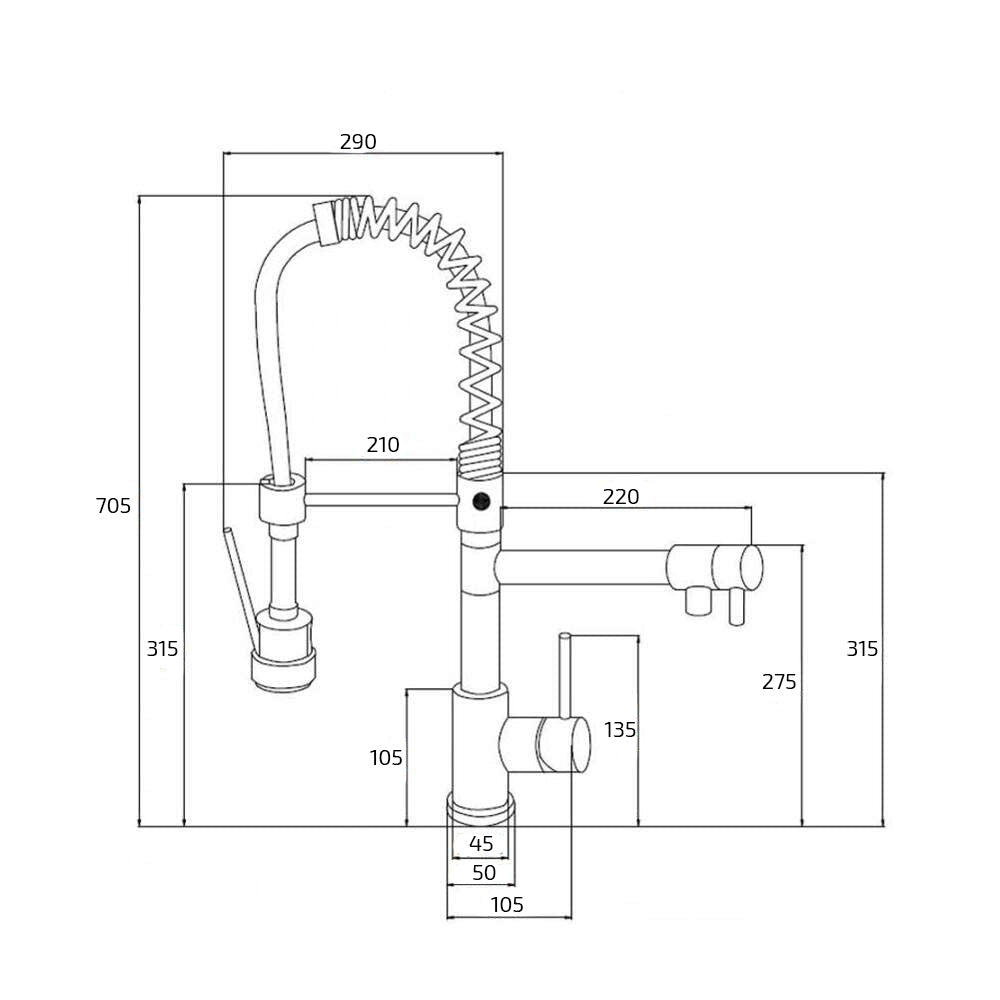 The tap features 2 functions a Pull-Down Sprayer and kitchen stream spout tap made from solid brass and finished in polished chrome, and using the Ceramic Disc Technology.