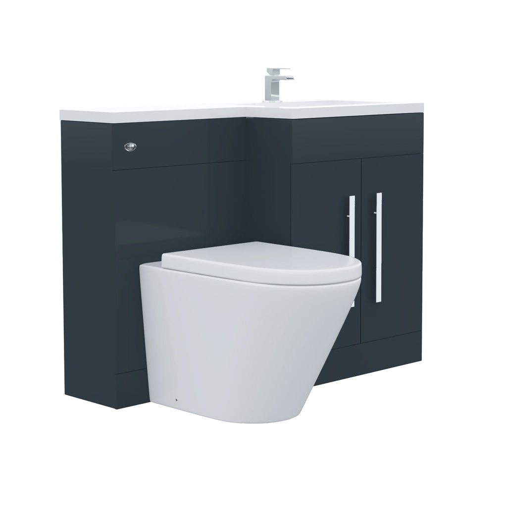 Aric 1100mm RH Freestanding Grey Vanity with BTW Toilet, WC & Basin Flat Pack