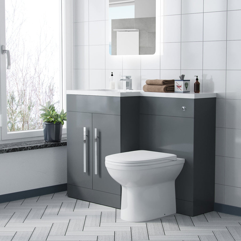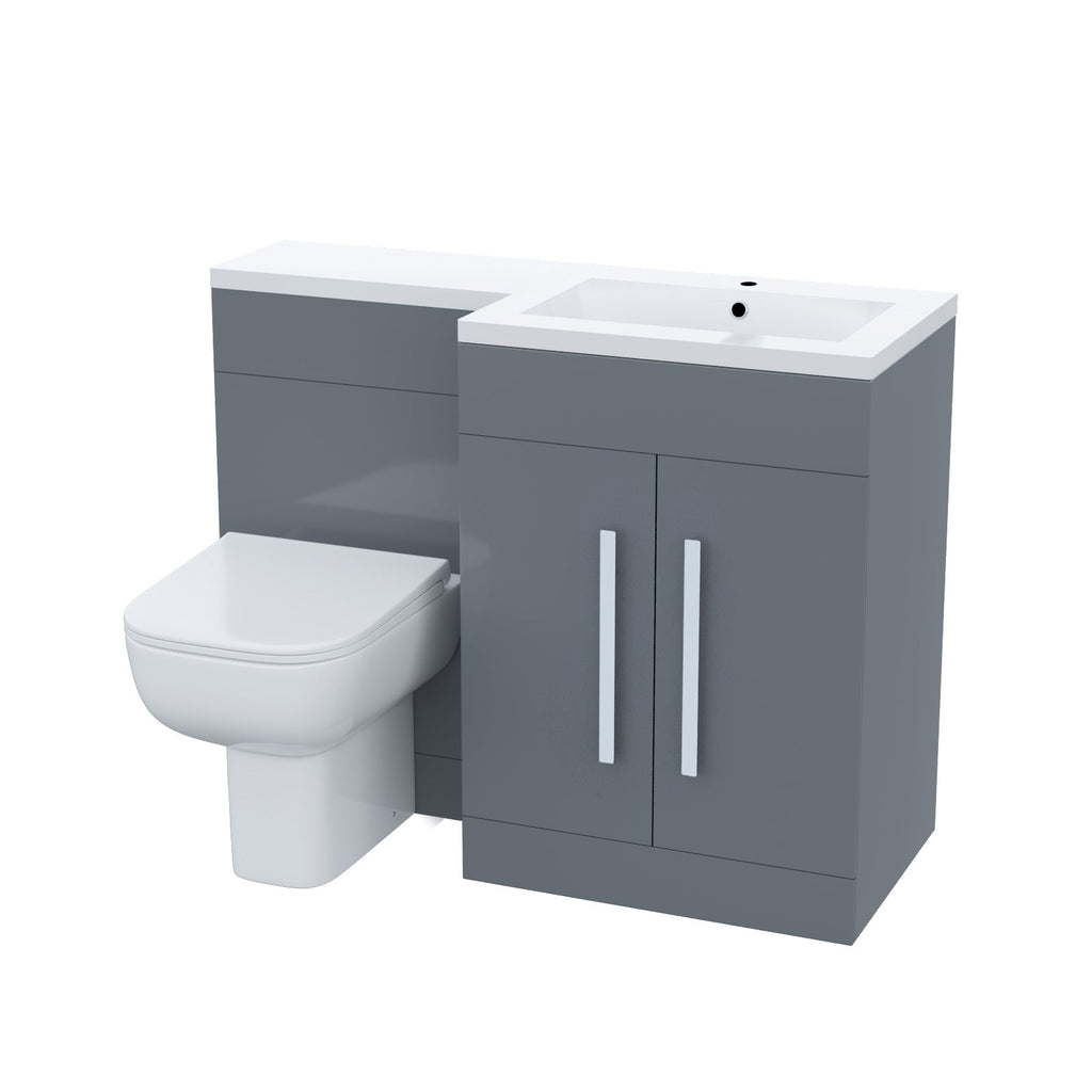 The stylish freestanding combination basin and WC unit with white resin basin top with an overflow and soft closing doors, it is of grey bathroom furniture and contemporary chrome effect handles which will bring a trendy look to your bathroom. The basin vanity unit is water resistant 18mm thick MDF construction.