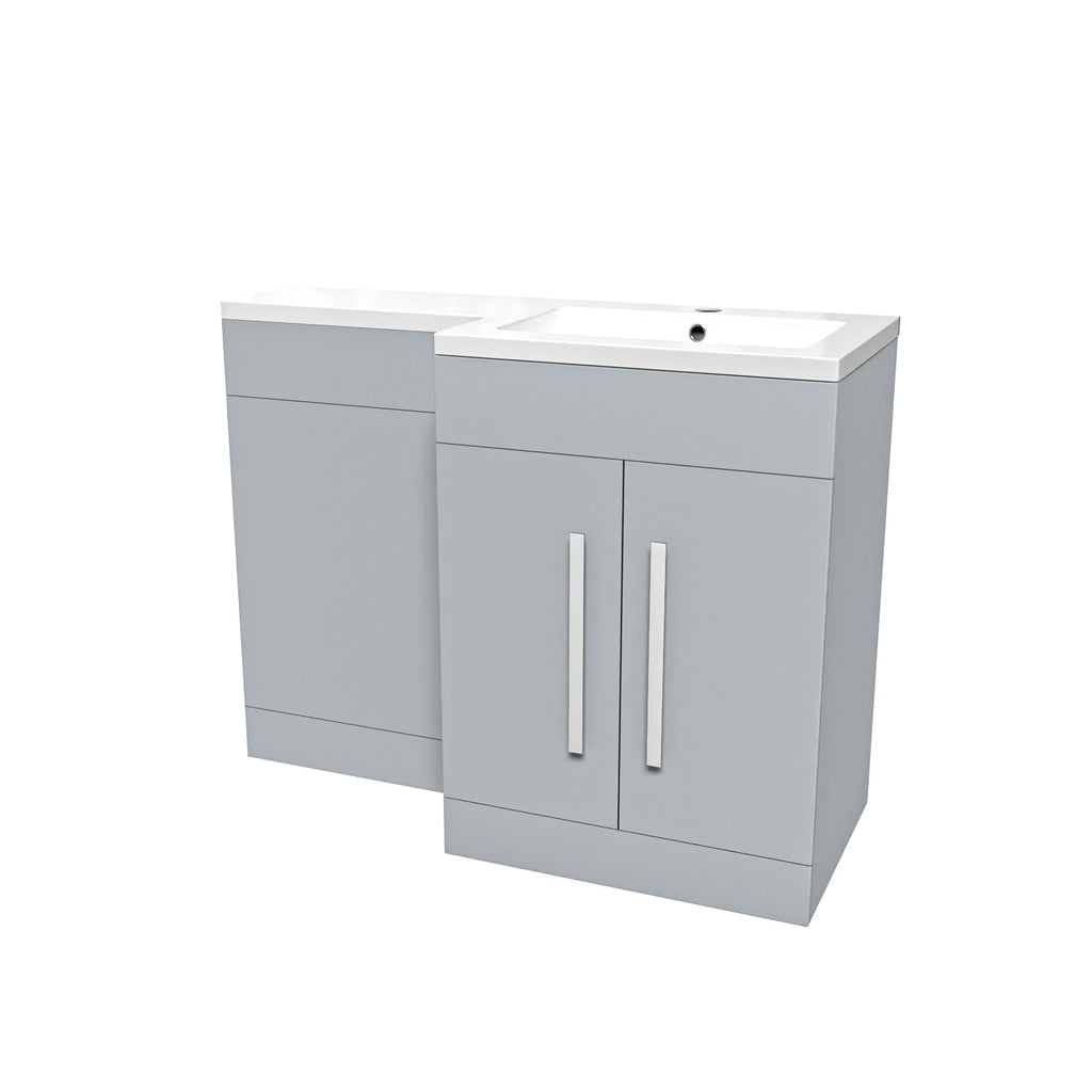 It features a white resin basin top, with a two door water resistant MDF cabinet, WC unit and contemporary chrome effect handles, bringing a modern look to your bathroom. The basin includes an overflow and one tap hole. The contemporary design hides all unsightly pipework creating a neat clean look.