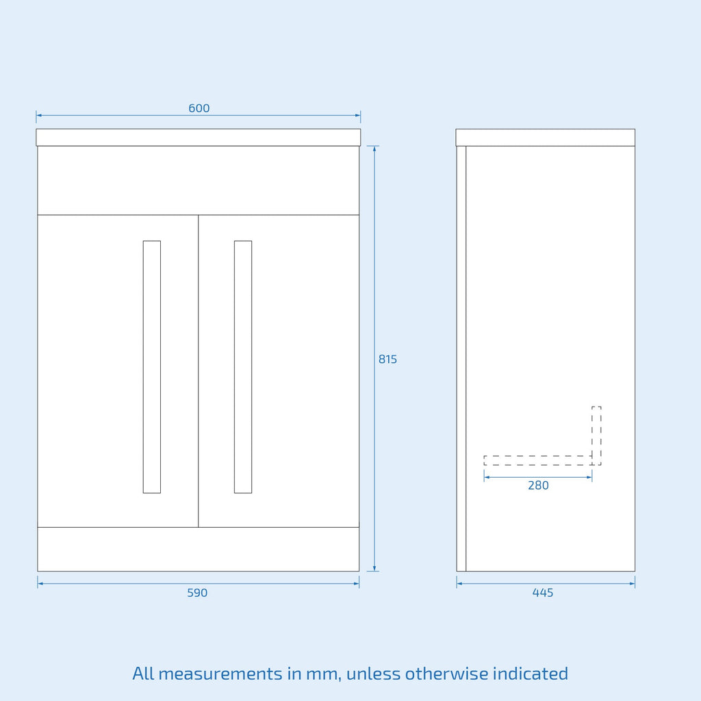 Key Features- 600mm grey freestanding cabinet with a modern, sleek finish that enhances any bathroom décor.