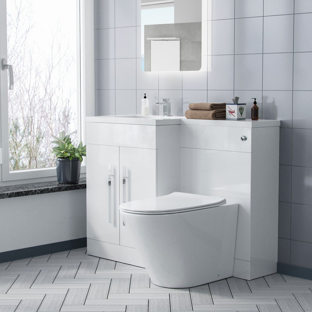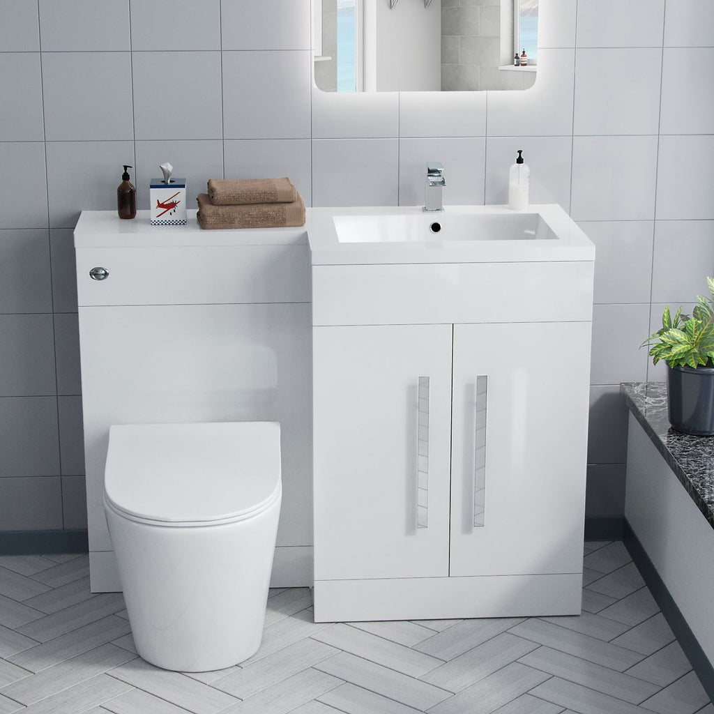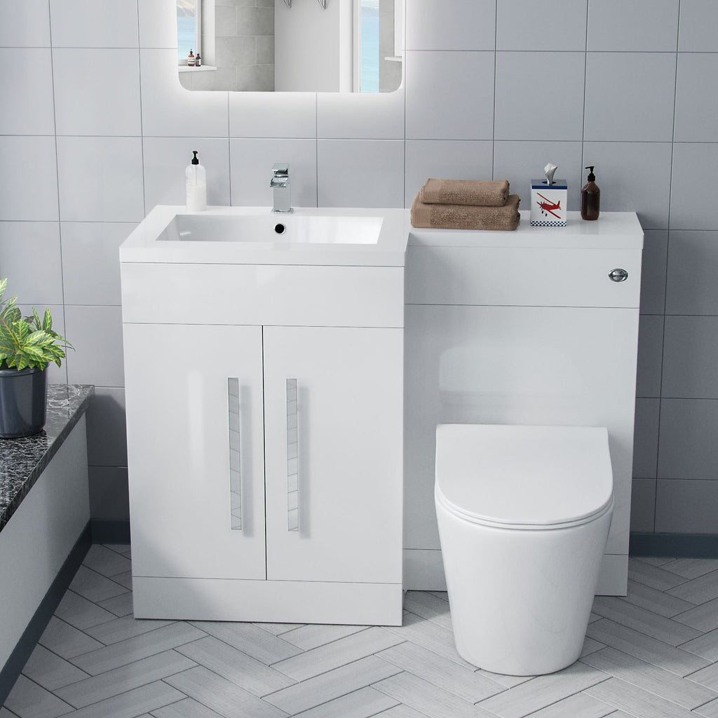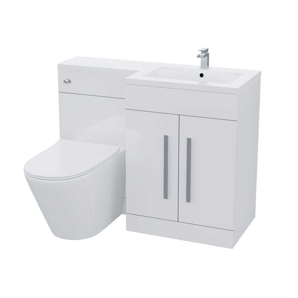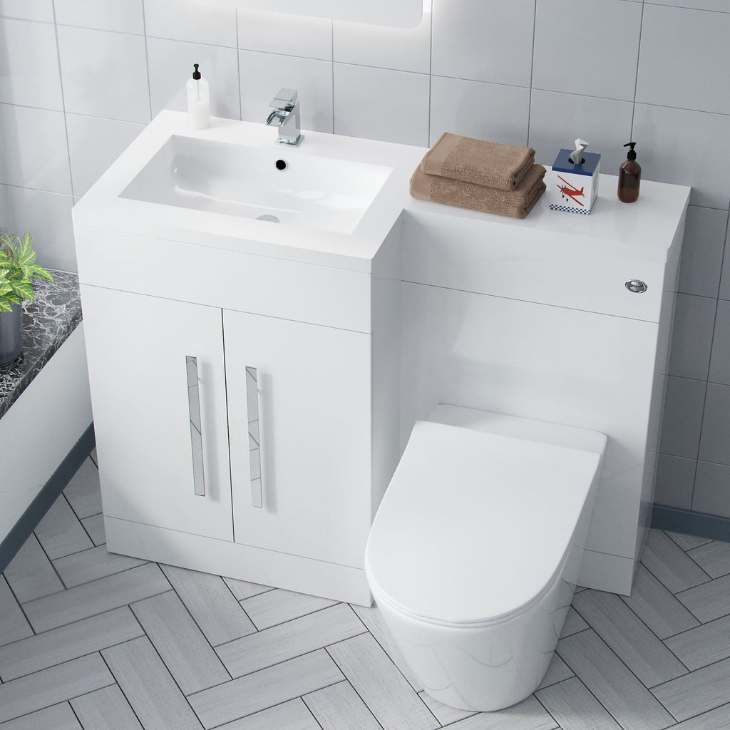 The stylish freestanding combination basin and WC unit with white resin basin top with an overflow and soft closing doors, it is of white bathroom furniture and contemporary chrome effect handles which will bring a trendy look to your bathroom. The basin vanity unit is water resistant 18mm thick MDF construction.