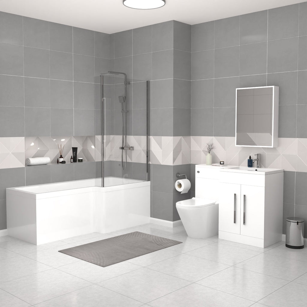 The Nes Home White 1700mm RH Bath With Screen, Basin Vanity Unit & BTW Toilet Suite is a comprehensive bathroom solution that combines style and functionality. This set includes an L-shaped shower bath, a sleek white basin vanity unit, and a back-to-wall (BTW) toilet. The shower bath provides ample bathing space, while the basin vanity unit offers convenient storage and a modern aesthetic. The BTW toilet is space-saving and efficiently designed. Together, these pieces create a cohesive and attractive bathroom ensemble that is sure to enhance any home.