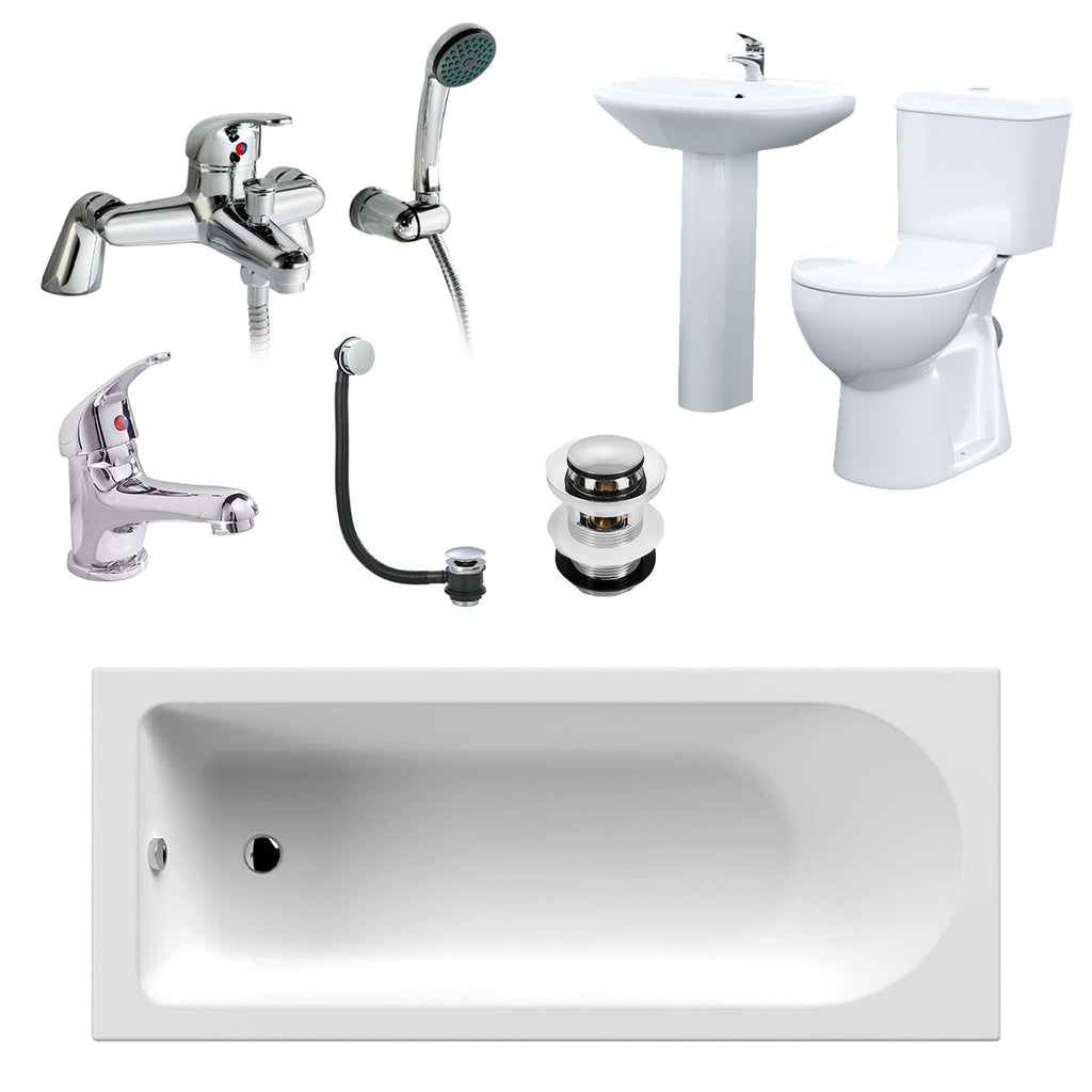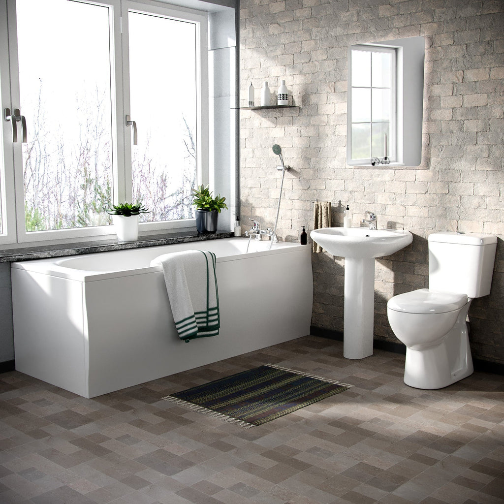 A great combination of essential bathroom items including a Close Coupled Toilet, Ceramic Basin With Full Pedestal, and Round Bath Tub. The Kentucky bath suite can provide the perfect choice for your bathroom.