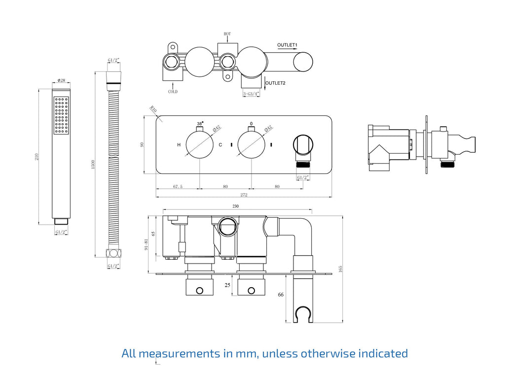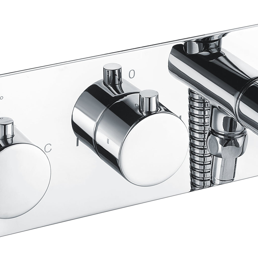 This Concealed thermostatic valve will compliment any modern bathroom suite, offering thermostatic showering via two easy-to-operate controls for temperature and flow. The concealed thermostatic valve also comes with a slim shower head and handset enabling the user to enjoy a simple and elegant showering experience