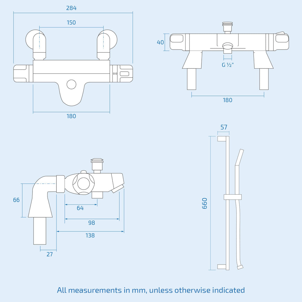 Featuring durable and dependable ceramic disc technology, this thermostatic bath shower mixer will supply water, at a pre-set temperature, to a shower handset, slider rail kit, rigid riser kit or fixed head shower. It also features an anti-scald device that shuts off the hot water should the cold water supply fail.