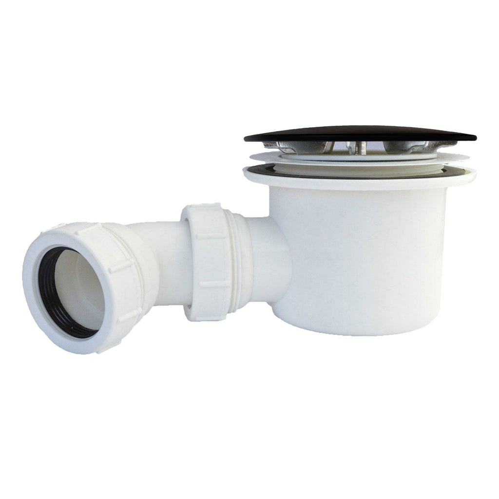 Shower tray waste kit. Suitable for any shower tray that has the British standard waste hole. Specially designed to enable water to flow from the shower tray at a greater rate. Maintenance and cleaning is achieved through the quick release inner unit. Fully flexible to ease installation of the shower tray waste and solves most waste plumbing problems. Comes with a shiny black dome cap for a beautiful finish.