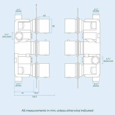 - Built-in nonreturn valves to prevent backflow and filters to protect the thermostatic mechanism