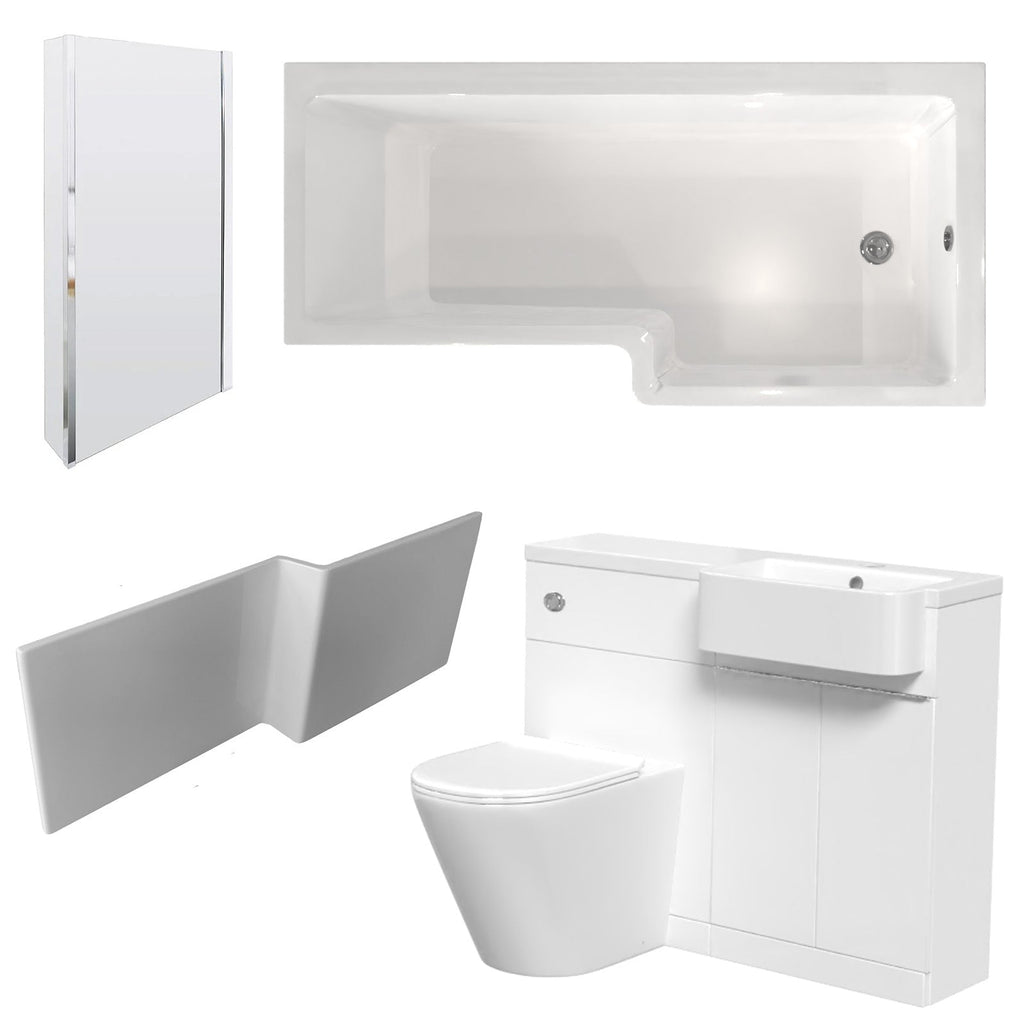 The Nes Home White RH Basin WC Unit & BTW Toilet & L Shape RH Bath & Panel & Screen is a versatile and stylish bathroom suite. It features a modern L-shaped shower bath, providing ample space for both bathing and showering. The floor-standing vanity unit comes with a white basin, offering a sleek and functional storage solution for your bathroom essentials. Additionally, the back-to-wall (BTW) toilet ensures a neat and tidy appearance with its concealed cistern. This suite combines contemporary design with practicality, making it a great choice for any bathroom space.