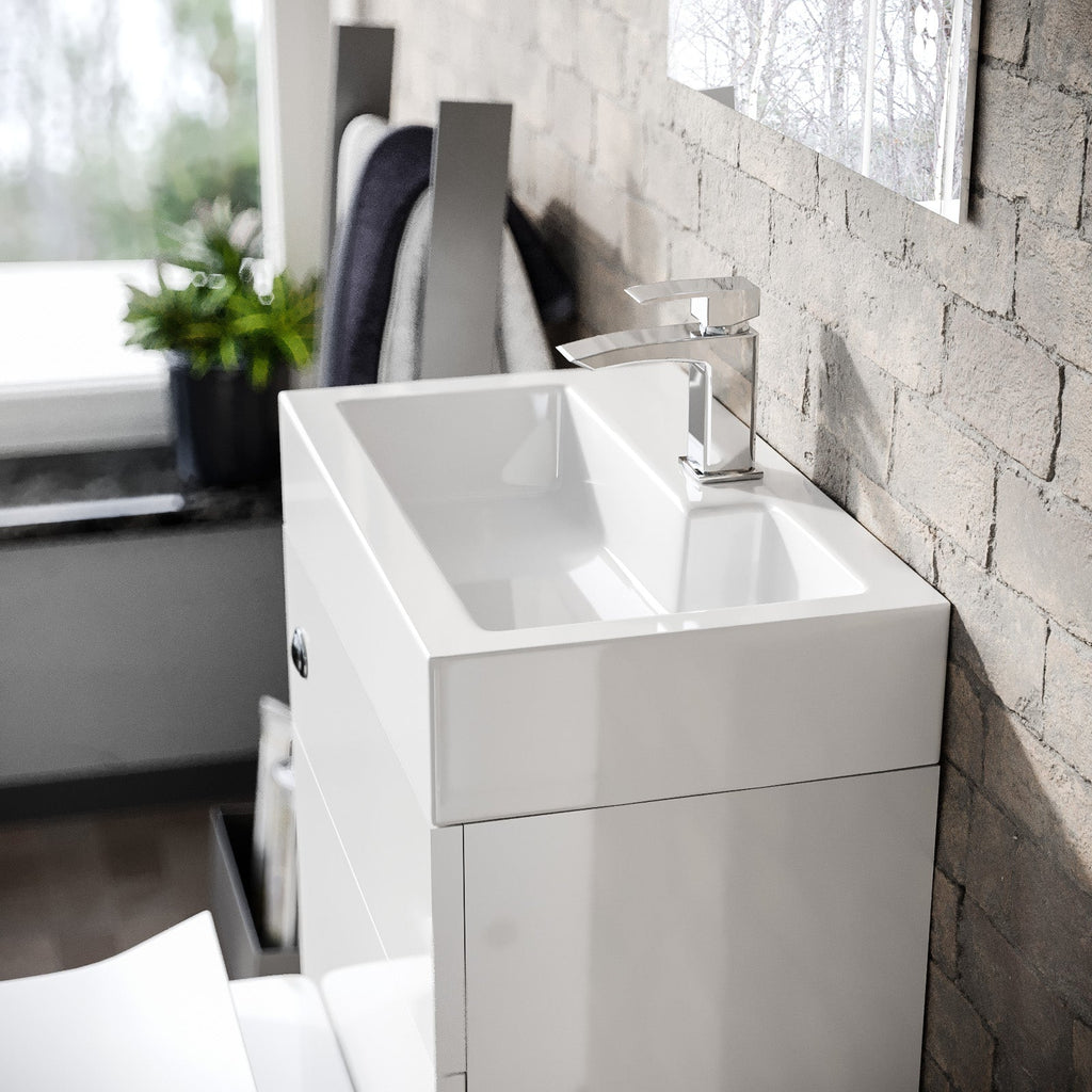 Two-In-One Wash Basin & Toilet offers a solution for small bathrooms. Cleverly designed with a sink on top of a WC Unit. All pipe works are neatly concealed to provide a simple and elegant look.