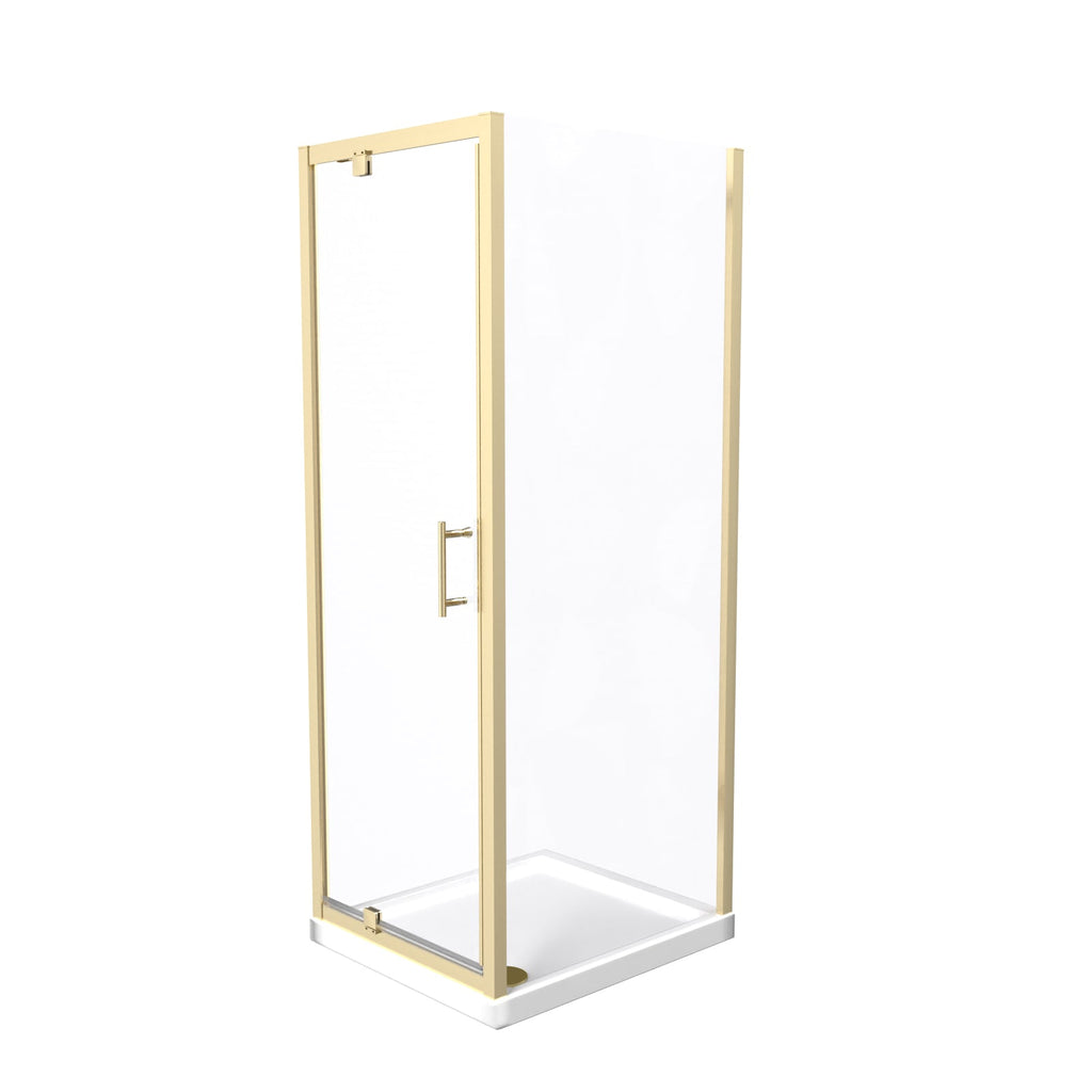 This pivot shower door enclosure with a brushed brass finish comes as a glass panel screen that can be placed as an L-shaped cubicle in the corner of your bathroom. The brushed brass finish will compliment contrasting light or dark coloured interiors and gives a modern look to the corner of your bath or shower room. The best feature is the functionality of the reversable pivot door which can be installed to open from right to left or left to right depending on what suits you! Matching taps and mirrors are also available.