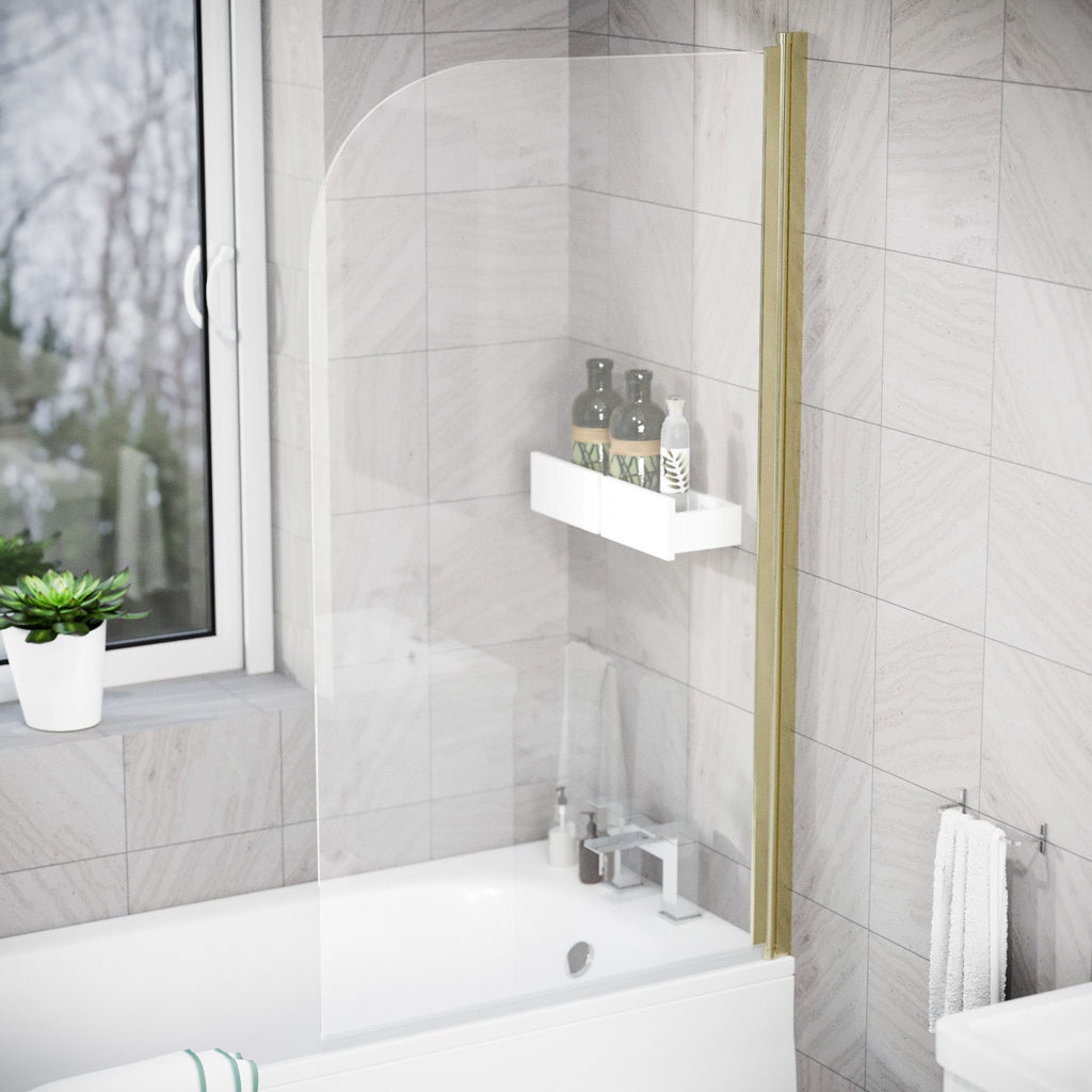 The Bath Screen will shield your bathroom or shower area from splashes and sprays, crafted from sturdy 5mm tempered safety glass and then perfecting off the modern look with a stunning brushed brass frame.