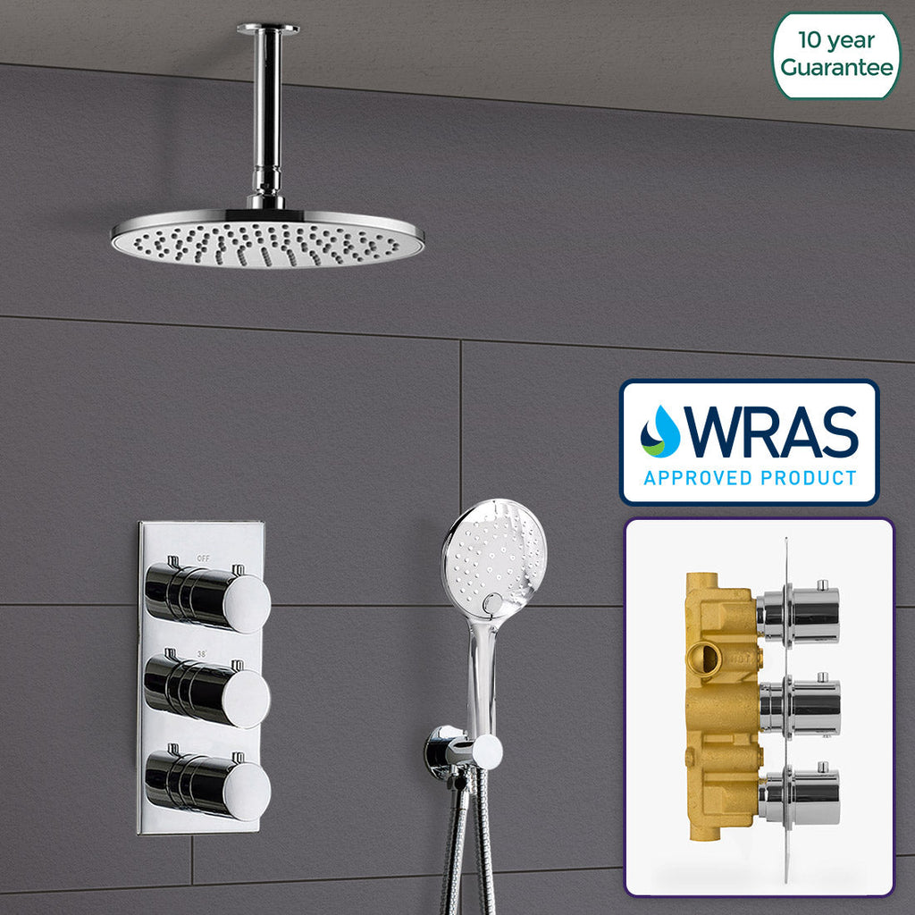 The thermostatic showering can be accessed via the 3 dial 2 way easy-to-operate dial controls - separate controls for temperature and flow; giving you full temperature control.