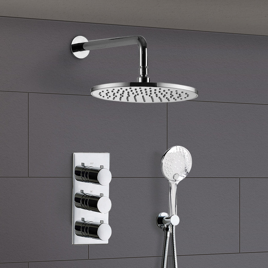 Featuring classic round design dials with short levers for fingertip control, the mixer valve supplies water to 2 outlet diverters and is finished in stunning chrome, leaving a silky-feel surface and a highly reflective mirror like sheen, making your taps look new for longer.The thermostatic showering can be accessed via the 3 dial 2 way easy-to-operate dial controls - separate controls for temperature and flow; giving you full temperature control.