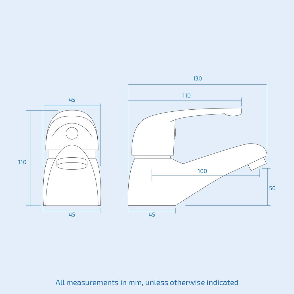 This basin mono mixer tap is the perfect complement to any modern bathroom. This high quality polished 3 layer PVC chrome finish, create a silky- feel surface, mirror-like sheen and tarnish & corrosion resistant.