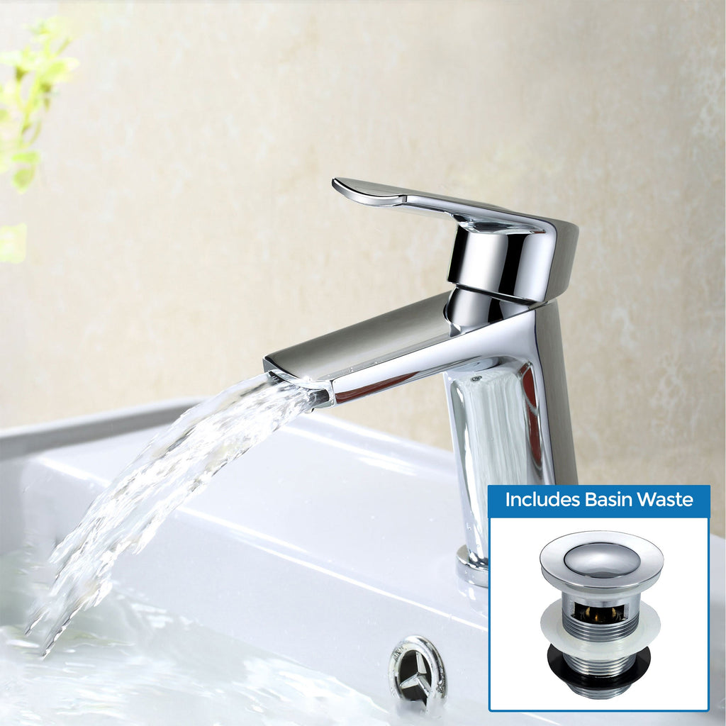 Create a modern, designer look in your bathroom with our waterfall basin cloakroom mixer tap. Waterfall taps allow the water to cascade down into the basin or bath and are perfect for complimenting any modern bathroom. They are of great build quality and design, featuring round pillars with thin, curved spout and handles.