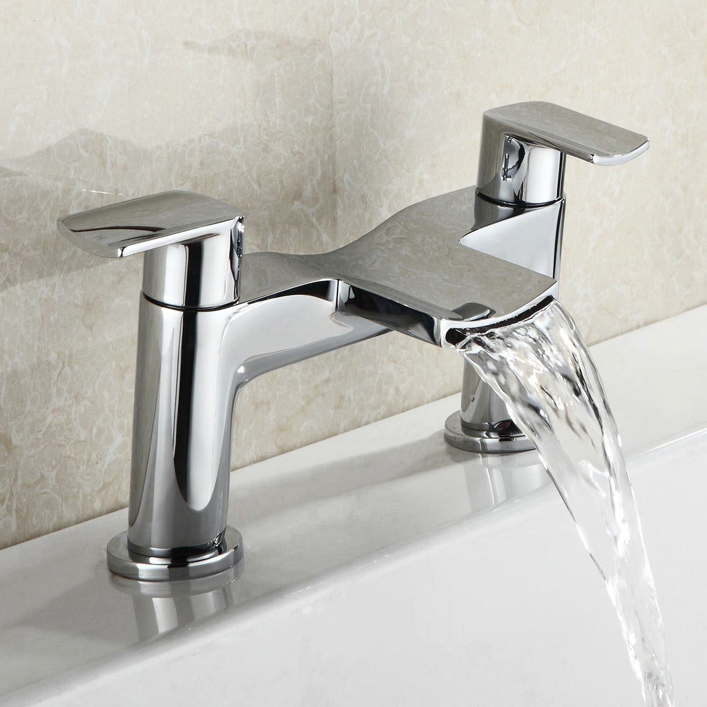 Create a modern, designer look in your bathroom with our waterfall bath filler and basin mixer tap. Waterfall taps allow the water to cascade down into the basin or bath and are perfect for complimenting any modern bathroom. They are of great build quality and design, featuring round pillars with thin, curved spout and handles.