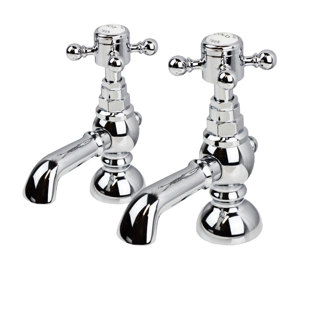 The Edwardian twin basin mixer tap adds a classic theme to your bathroom, with its chrome plated body and cross head handles it is both a traditional style and a modern function tap, made from brass for that extra durability.