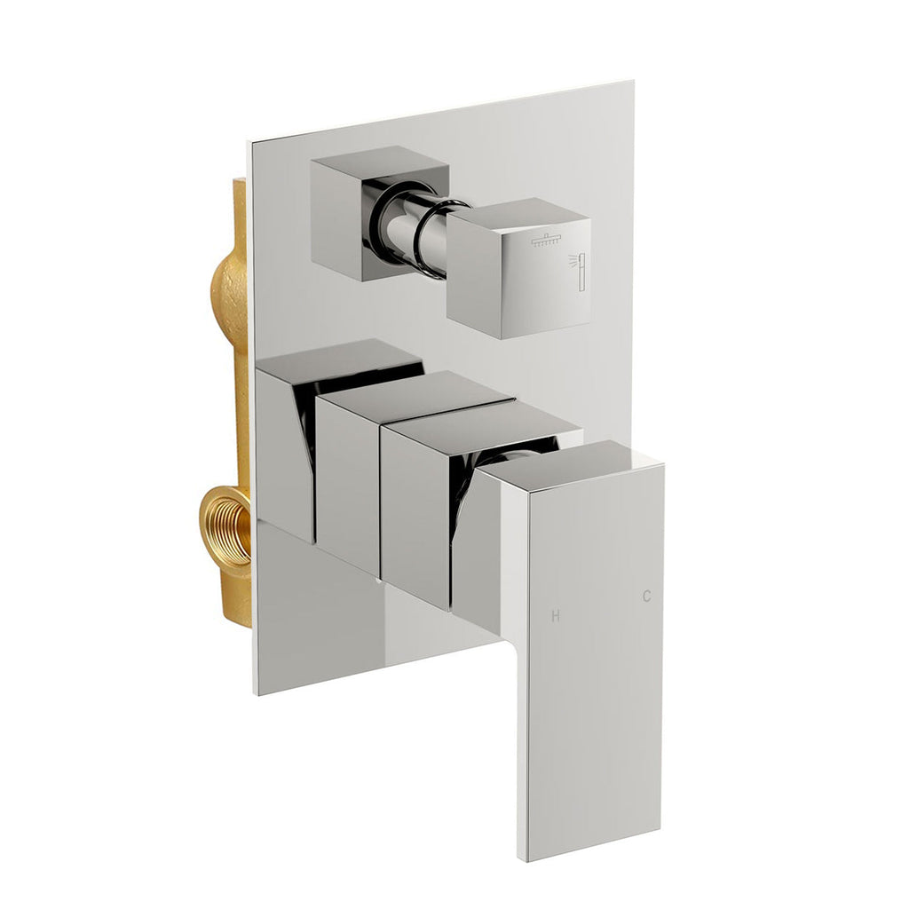 Concealed Shower Mixer with built-in diverter offers a flexible shower solution to your wetroom. Features an easy to operate controls; lever handle to adjust the temperature. The square dial acts as a diverter to switch between the shower accessories.