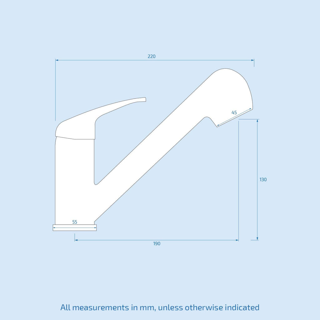 This contemporary matt black kitchen sink mixer mono-bloc tap adds a new modern touch to any kitchen. Featuring a sleek modern handle and a smooth round 2 mode pull-out swivel spout, this tap is suitable to use with any tap hole sink.