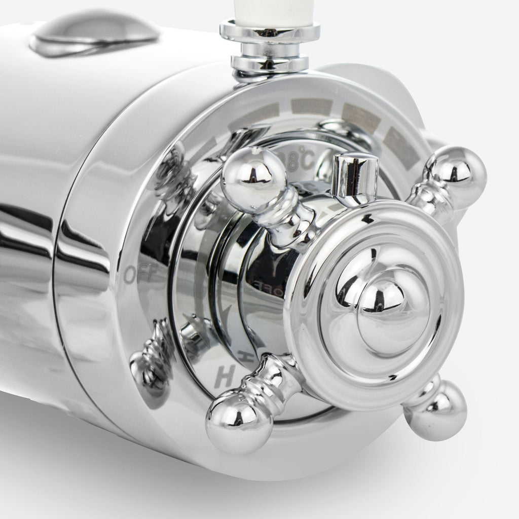This Thermostatic Valve is a Modern innovation and precision engineering complemented with a stunning traditional design, constructed from high-quality brass for superior construction, extra strength, long-lasting durability and heavyweight feel. The bodywork is beautifully designed and powerfully sculpted, polished mirror chrome finish that will look absolutely stunning in any bathroom setting.