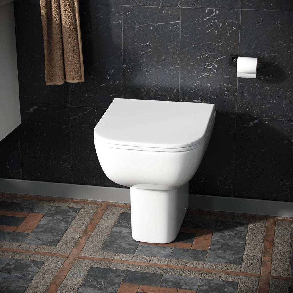 The Debra back to wall toilet pan and seat is an ultra-modern designer shape. Mixing with subtle curves and clear cut direct lines, this toilet is made from White Vitreous China, covered with a high gloss finish which makes the toilet stand out. The toilet features a rimless design that enhances its clean, minimalist look, perfectly complementing any modern bathroom.