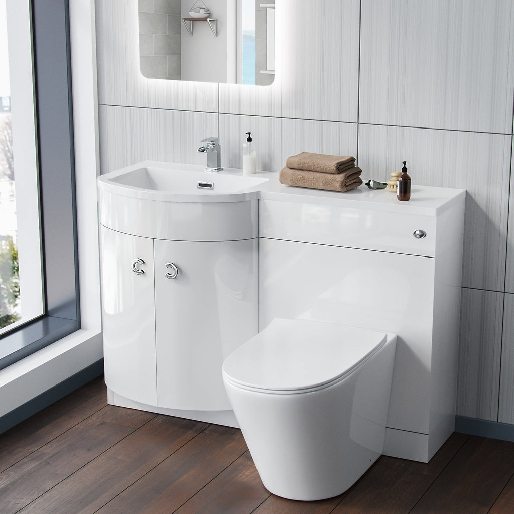 Introducing the Dene WC & Basin Combination Unit in White gloss, a stunning addition to any bathroom. This full unit measures 1100 mm making it perfect for smaller and cloakroom bathrooms, this vanity unit maximizes space without compromising on style.