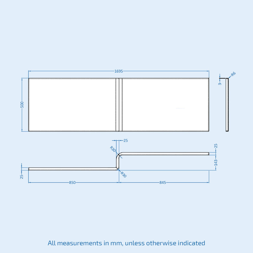 - 1 x L Shaped Bath Screen