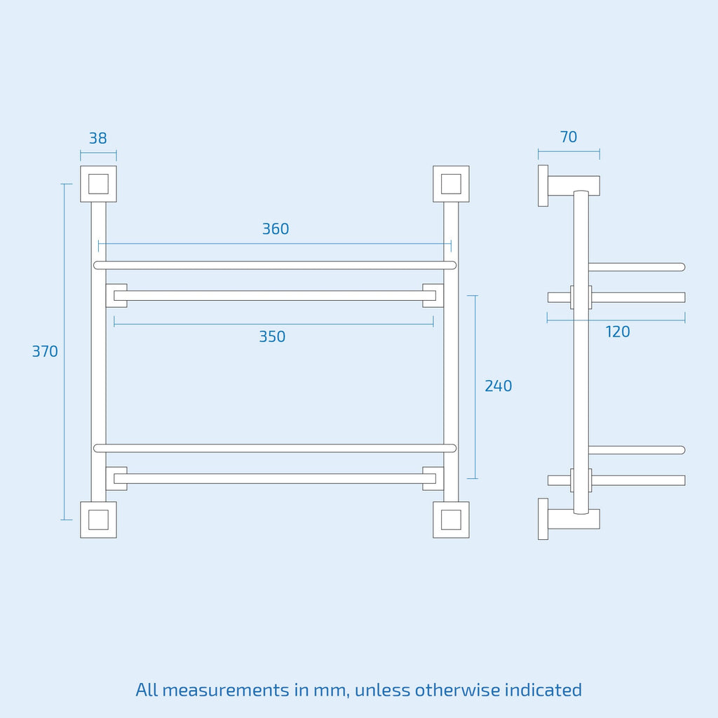 The double glass shelf is made of Matte Black which will add the perfect touch to your bathroom and make it look neat, tidy and stylish. All accessories are designed to be wall mounted via the elegant black wall plates.