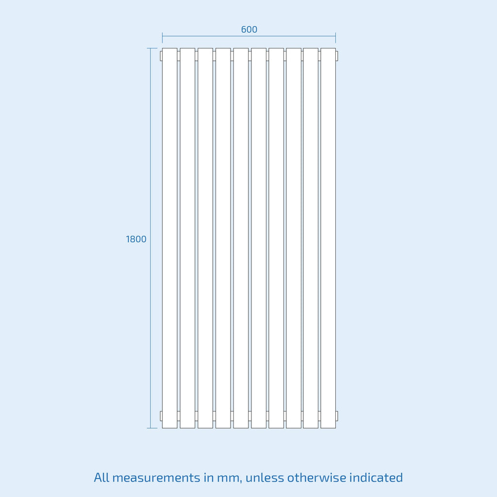 This stunning black 1800 x 600 mm vertical oval tube radiator can become a reflection of your home's interior design, stylish and efficient that will inspire as much as they warm.Also it has a super heat output, which gives maximum efficiency when it comes to keeping your house warm, even in the coldest months.