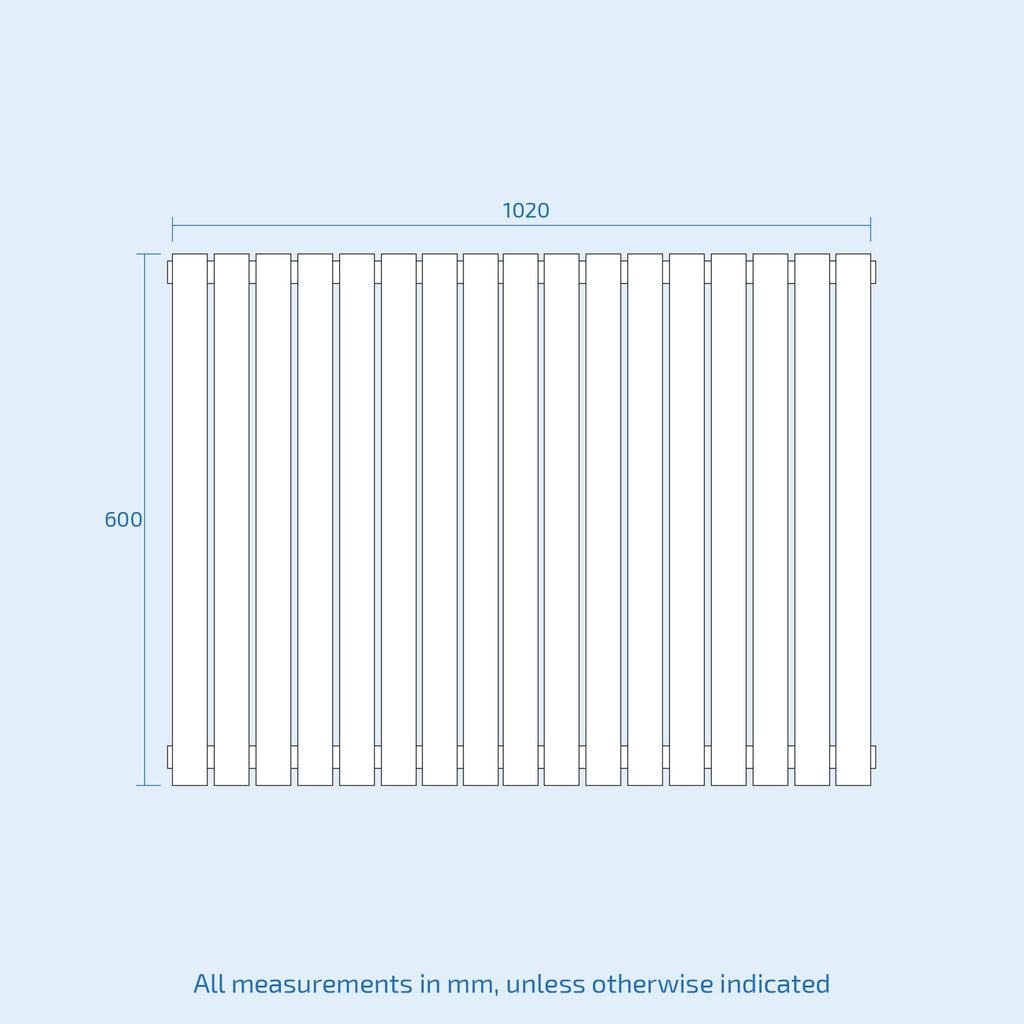 This sleek black horizontal radiator (600 x 1020 mm) features double oval tubes and delivers powerful heat output—ideal for bedrooms, TV lounges, living rooms, and kitchens. Designed for side connection, it supports H Block or standard valve setups and adds modern style to any space.