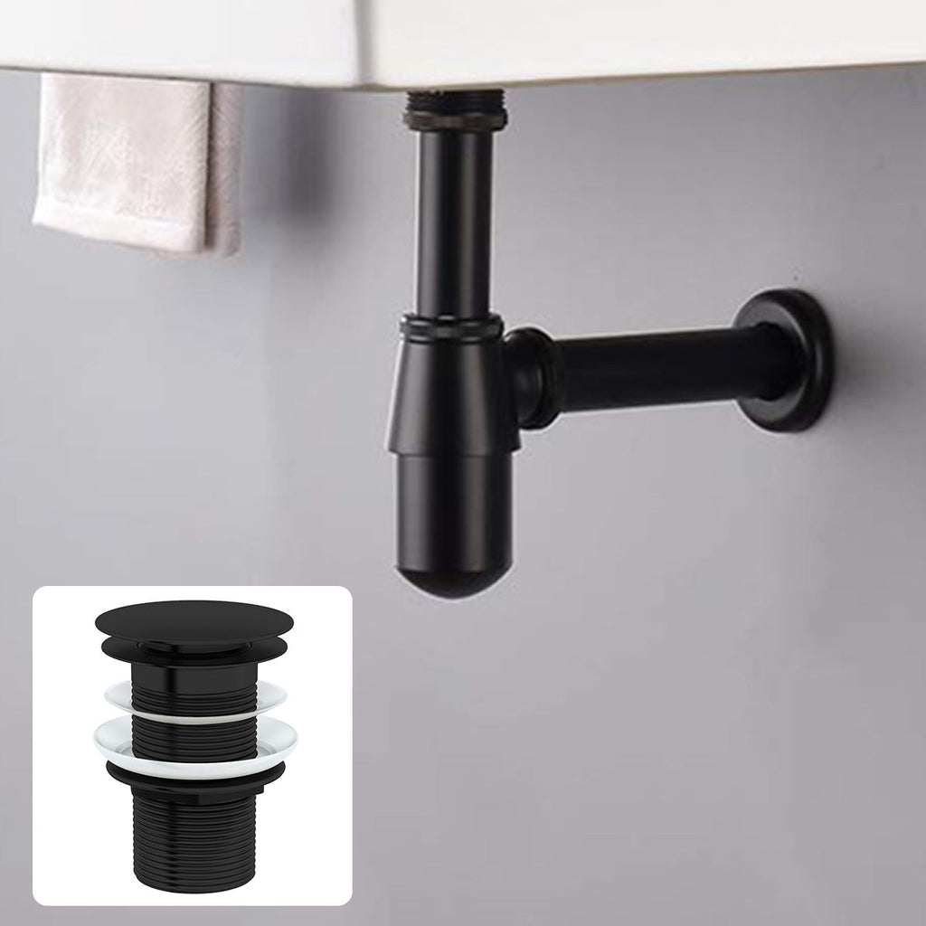 The Bathroom Basin Bottle Trap & Unslotted Waste is a plumbing component designed to connect the waste outlet of a bathroom basin sink to the drain pipes. It is made of high-quality materials that ensure durability and longevity, while also providing a sleek and modern look with its matte black finish.