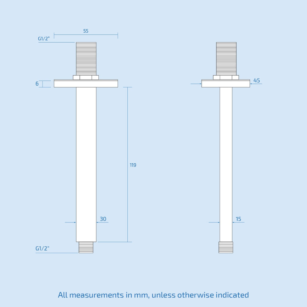 High quality, affordable shower arms made from solid brass, with a high shine chrome finish, are perfect for modern family bathrooms. The bold stylish shower arms will compliment any bathroom by achieving a minimalistic, but modern look.