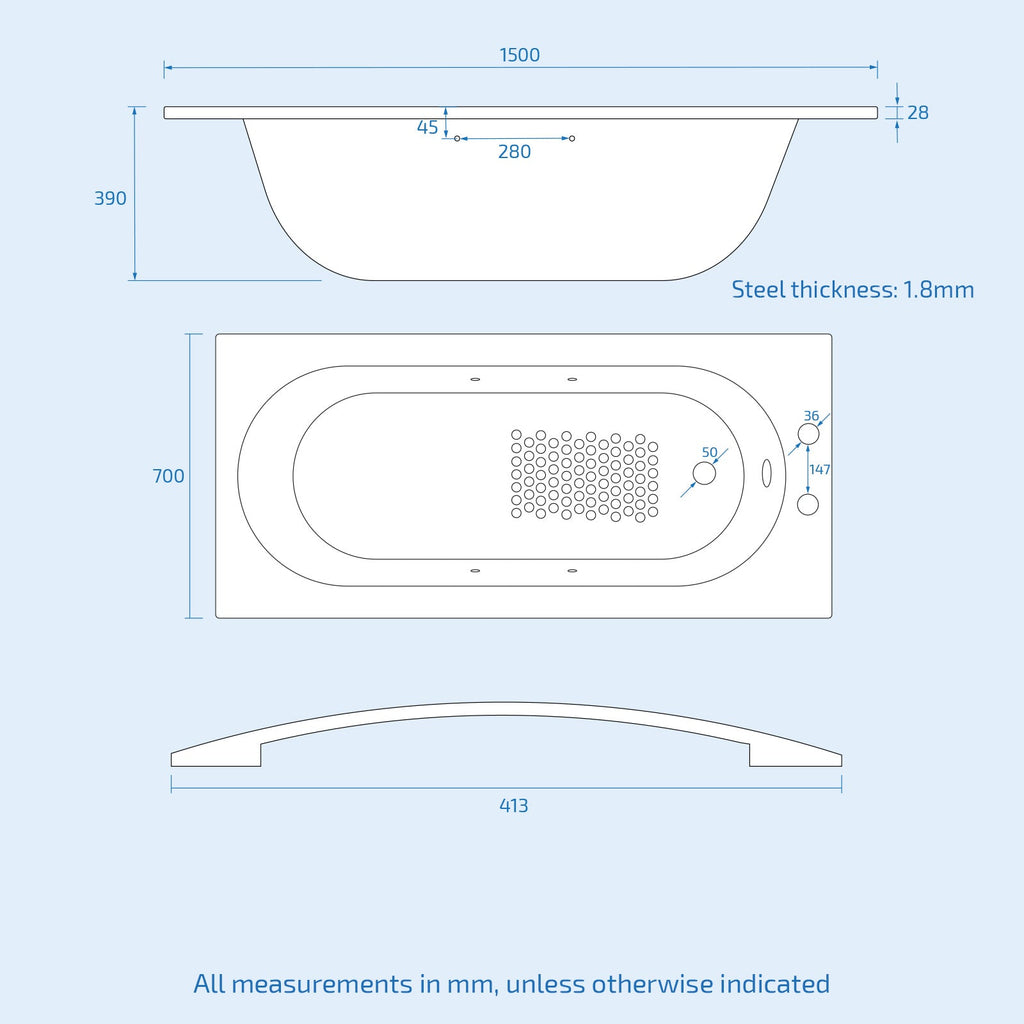 - Compliant with BS EN14516 Baths for domestic purposes