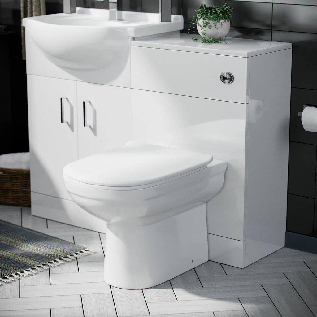 The Toilet features an ultra-slim soft close seat making the toilet safer to use within your family home and accompanied by a stunning chrome-plated round dual flush button, the toilet is made from ceramic.