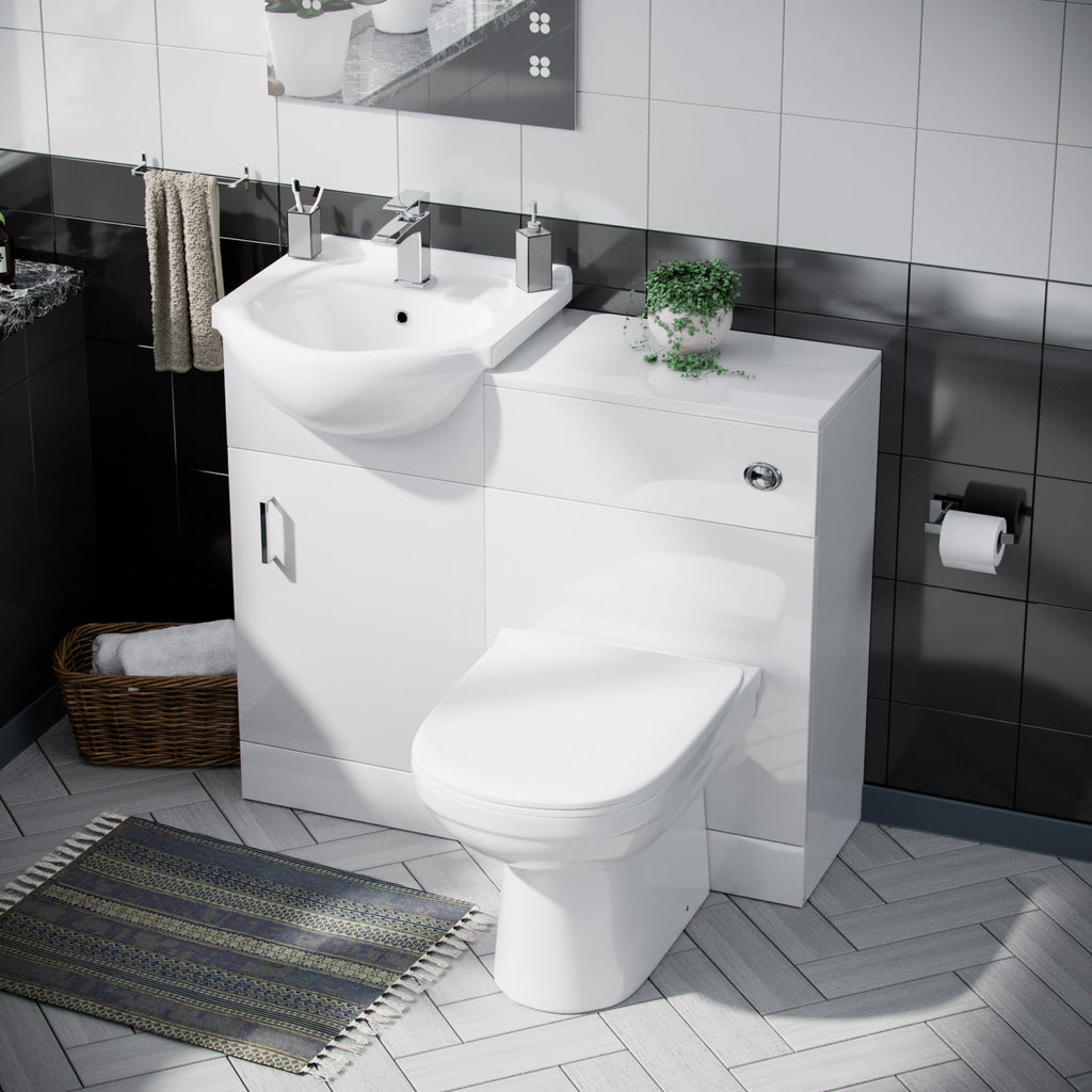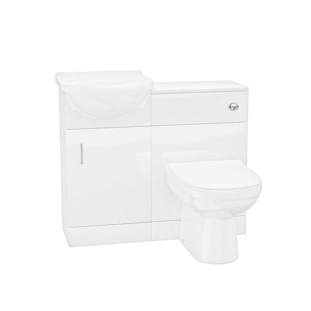 This stunning 450 mm white gloss Floor Standing basin vanity unit and back to wall WC toilet 2 piece set, is the perfect choice for smaller bathrooms with limited space.