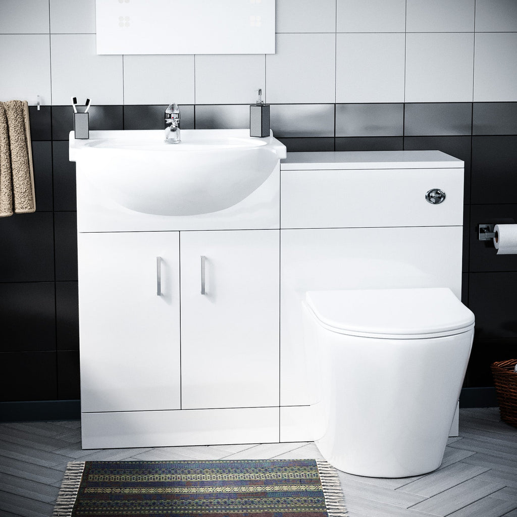 - Space-Saving Solution: The 550mm white vanity sink unit, cloakroom basin, and back-to-wall (BTW) toilet WC are designed to maximize space efficiency in smaller bathrooms or cloakrooms