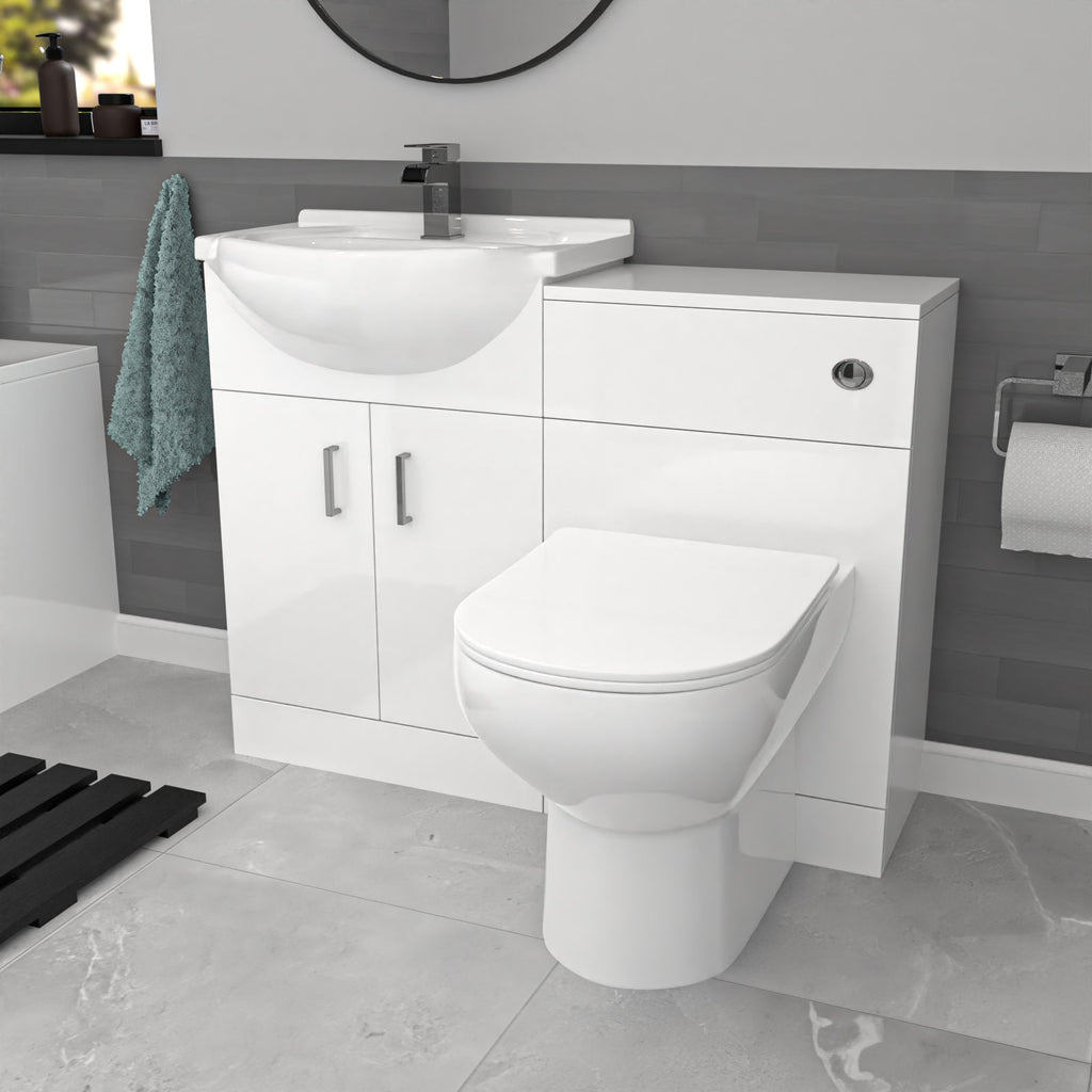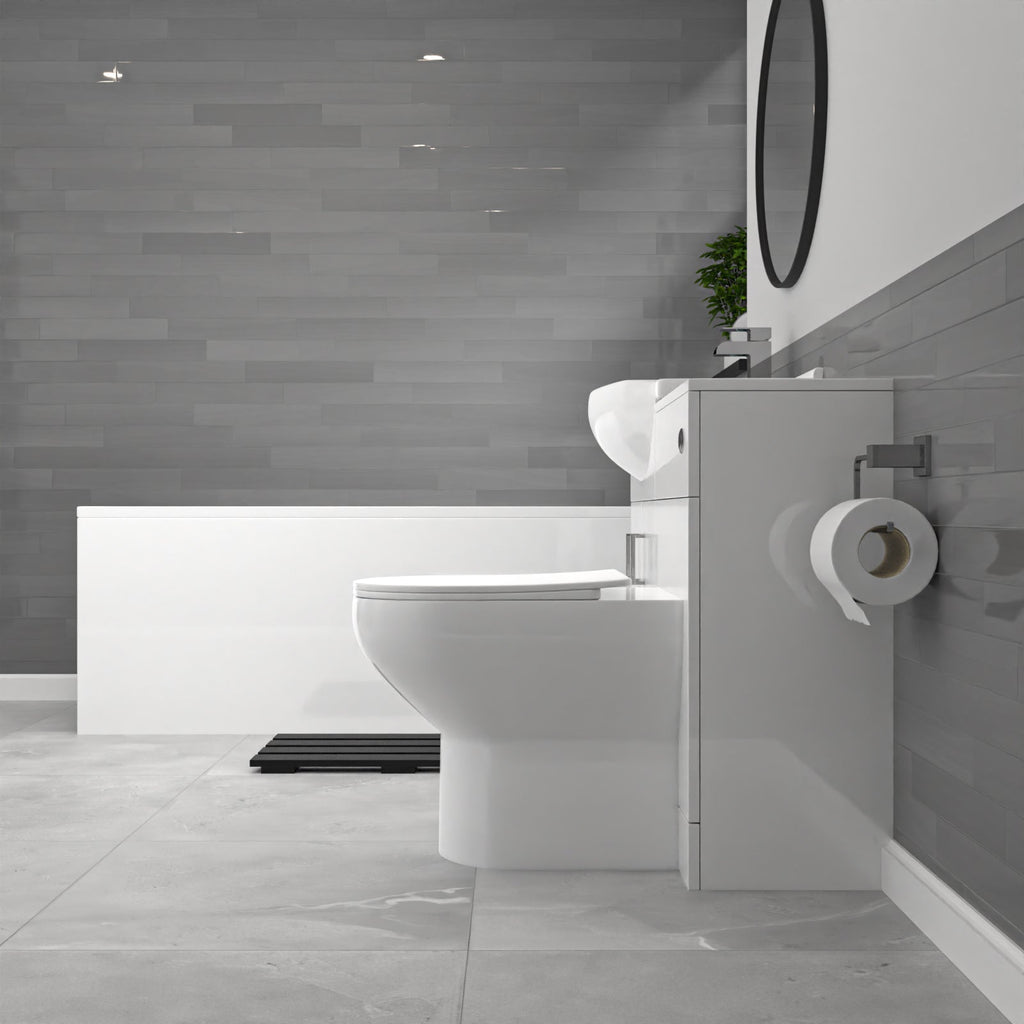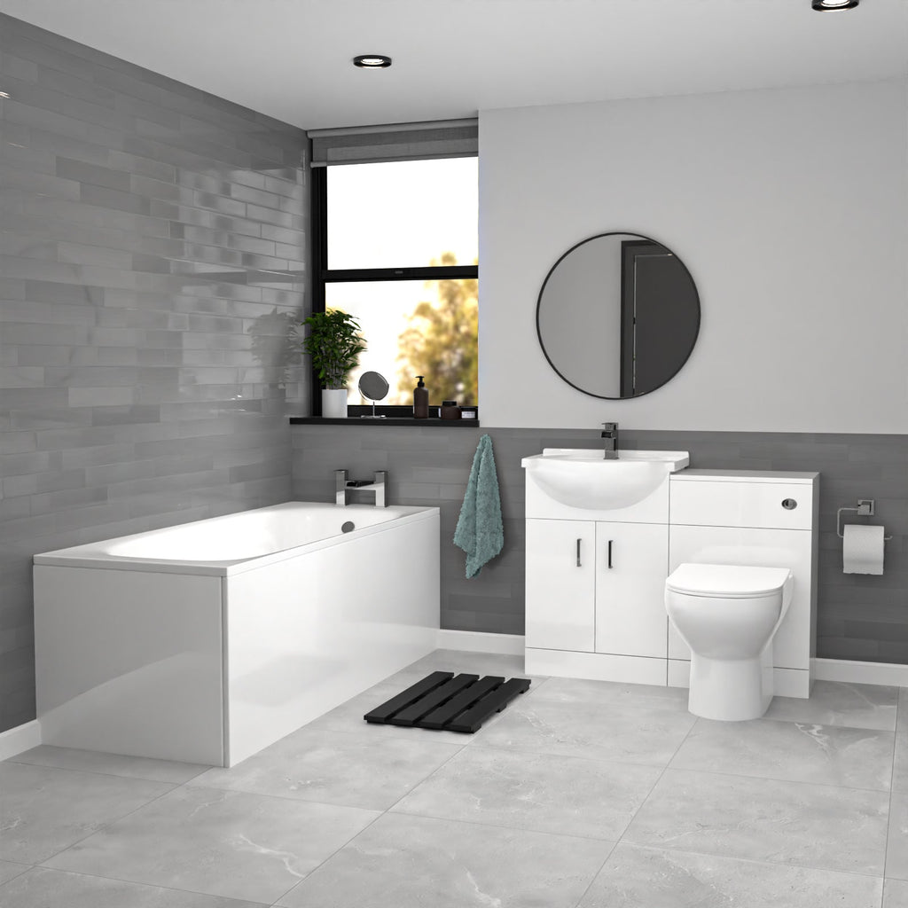 This beautiful suite comes with 550mm glossy white freestanding basin vanity cabinet, WC unit, and glossy white toilet as well as an acrylic bath tub. The ultra-modern designer shape back to wall toilet pan comes with a soft close seat cover and 10 years guarantee. This toilet is made from white ceramic, covered with a high gloss finish which makes the toilet stand out and the Bath is made from acrylic making the bath, durable and resistant to scratches and stains.