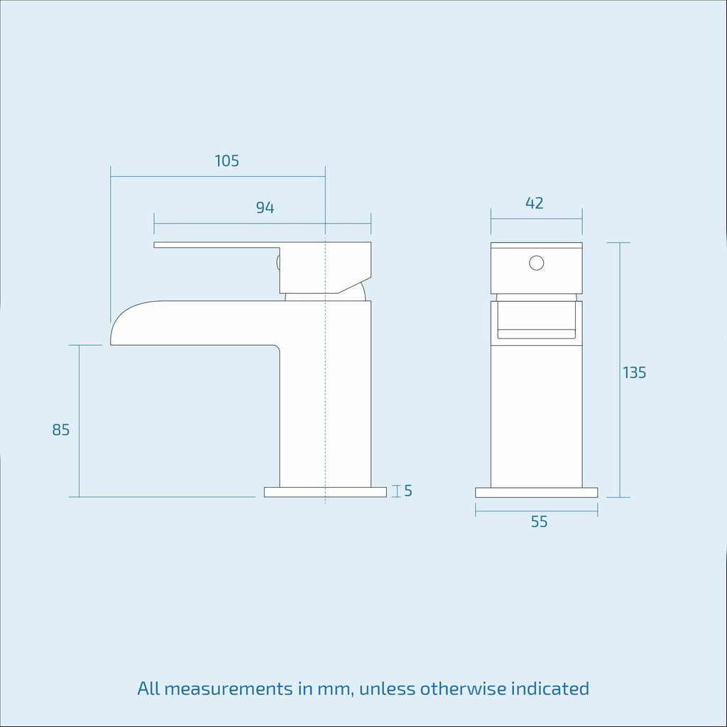 - Complete with 350mm braided flexible hoses with 1/2" standard fittings