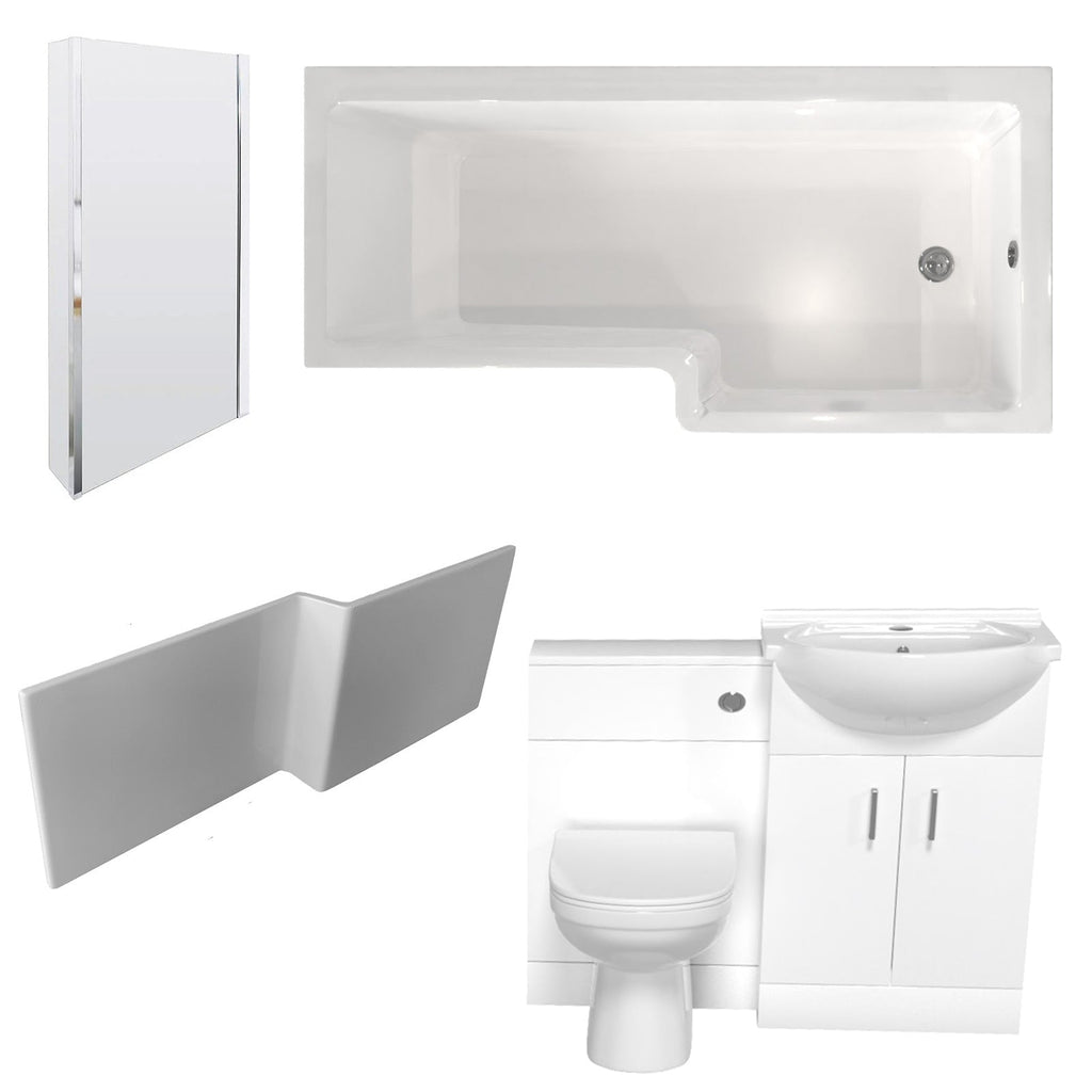 Left or Right L Shaped Bath & 550 mm Vanity Unit & WC Unit & Toilet