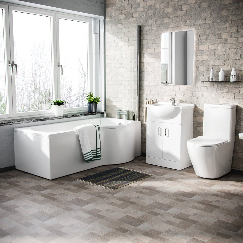 This elegant bathroom suite includes a sleek close-coupled toilet, a stylish vanity basin unit, and a right-hand P-shaped bath, making it an ideal fit for bathrooms of any size. Crafted from water-resistant MDF, the suite offers both durability and modern aesthetics, ensuring long-lasting quality and functionality.