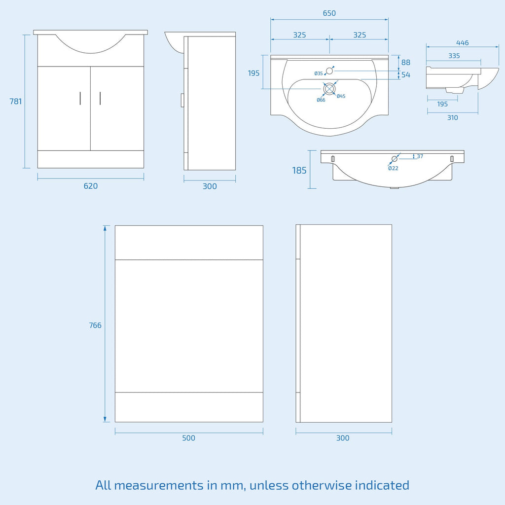 - Basin Width: 650mm