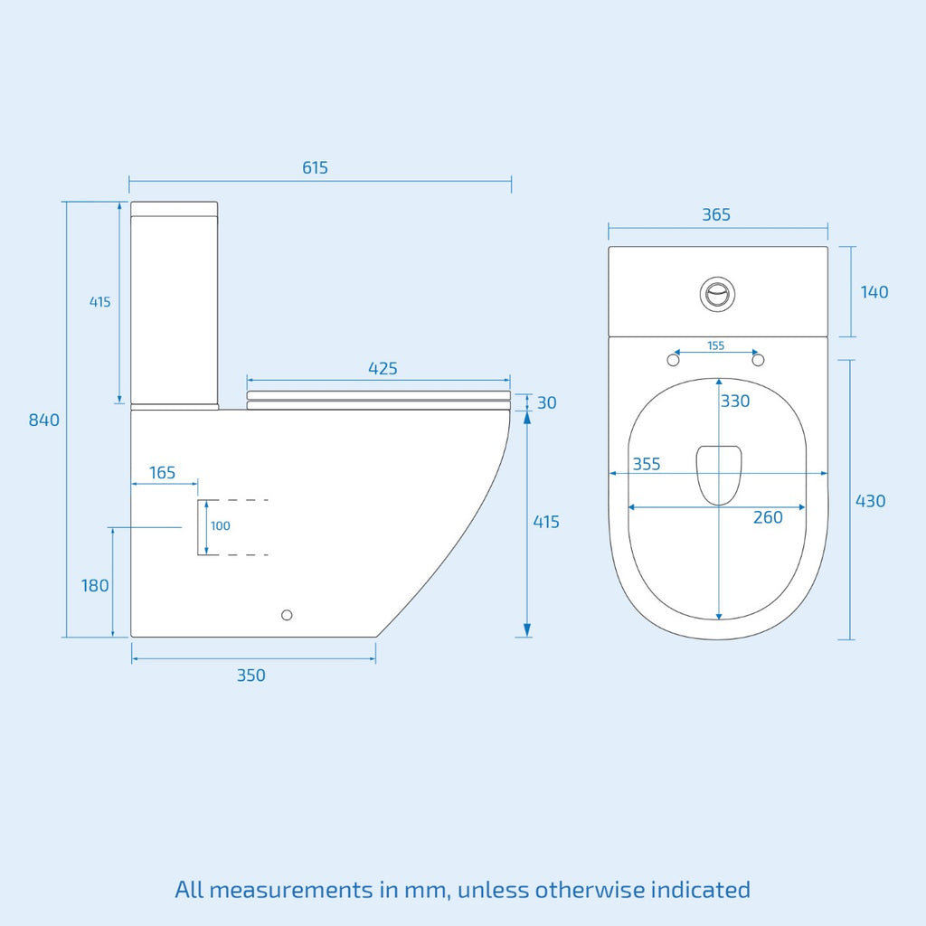 - Close coupled toilet