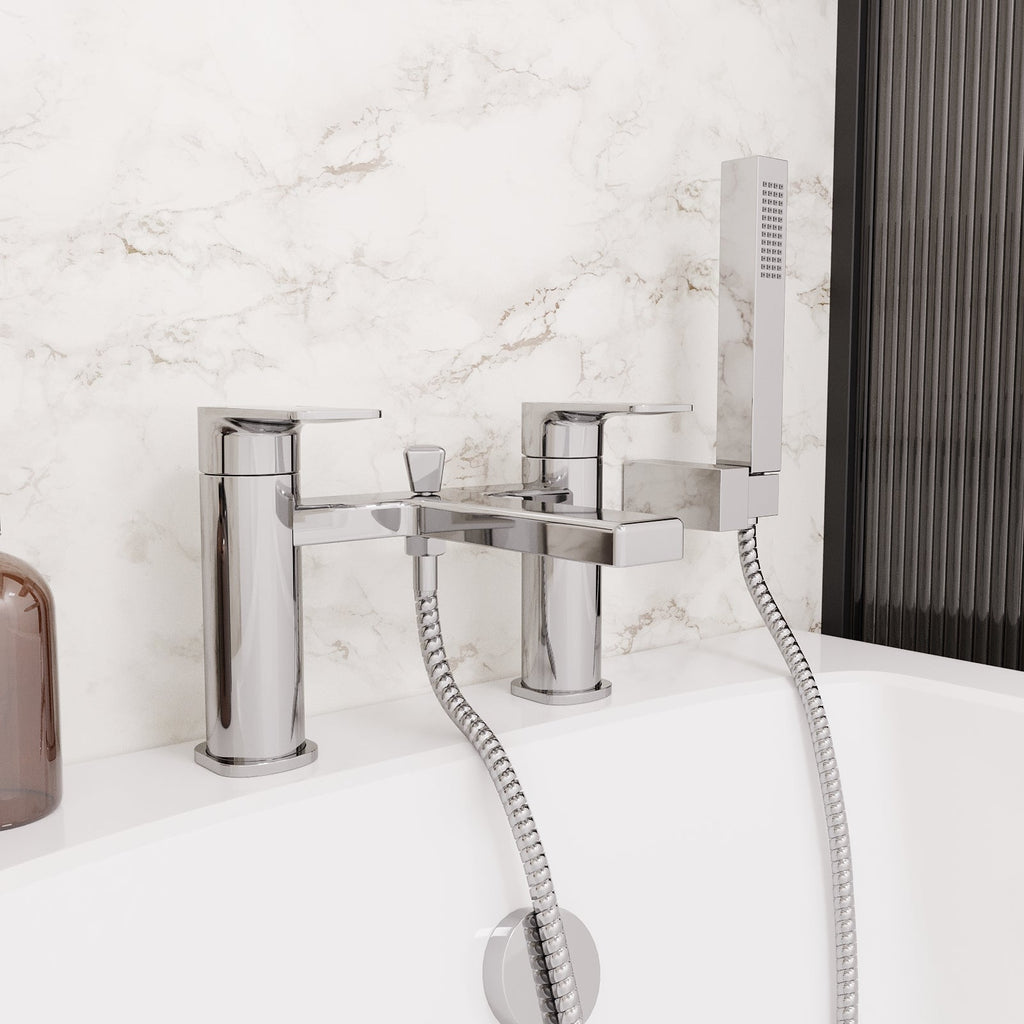 The Nes Home Gisela Modern Deck Mounted Chrome Bath Shower Mixer Tap with Shower Kit is a stylish and functional addition to any bathroom. This deck-mounted tap features a sleek chrome finish that adds a touch of modern elegance to your bath space. The mixer tap allows you to easily switch between bath and shower functions, providing versatility and convenience. The accompanying shower kit includes a handheld showerhead and a flexible hose, allowing for comfortable and adjustable showering. With its durable construction and easy installation, this bath shower mixer tap is a reliable choice that enhances both the aesthetic appeal and functionality of your bathroom.